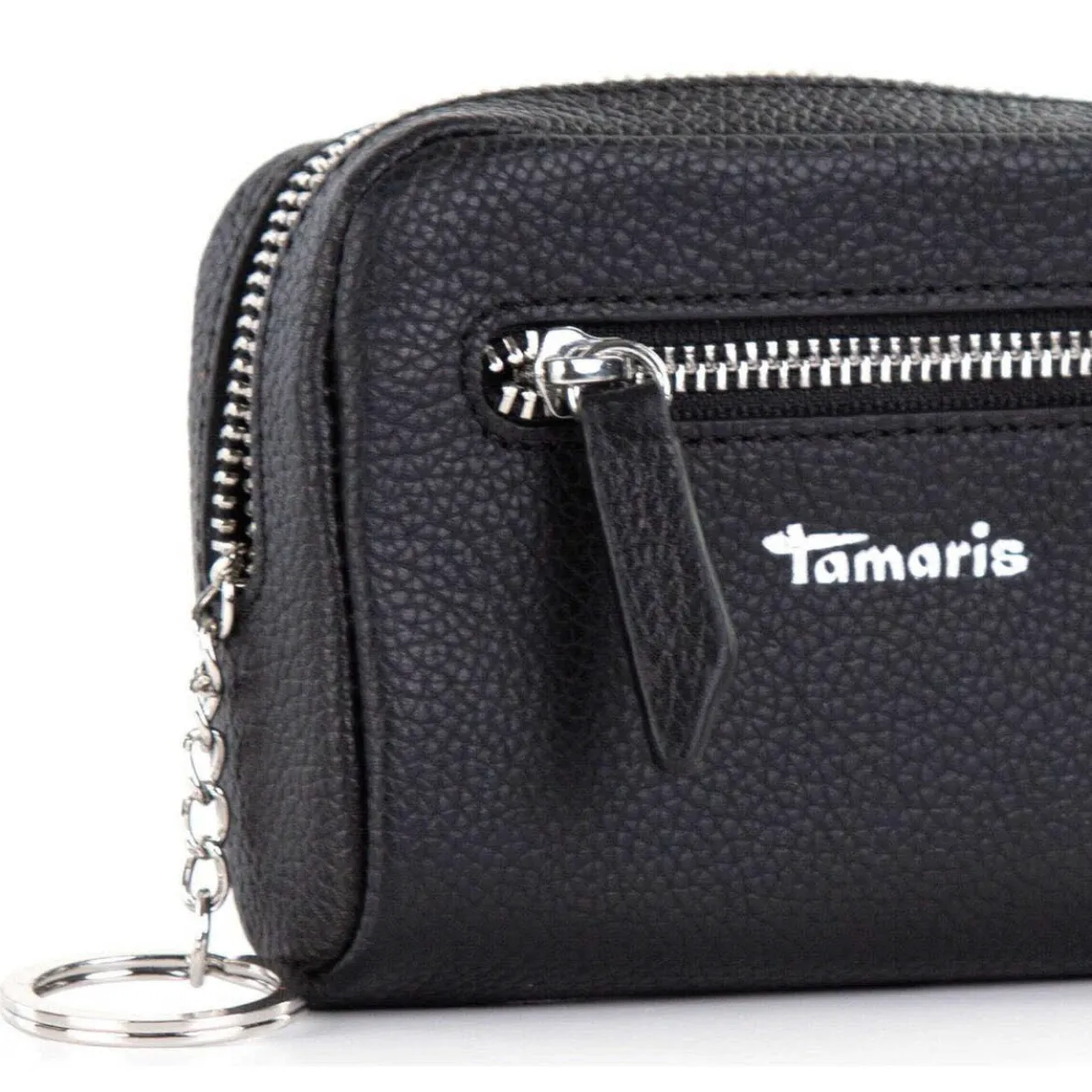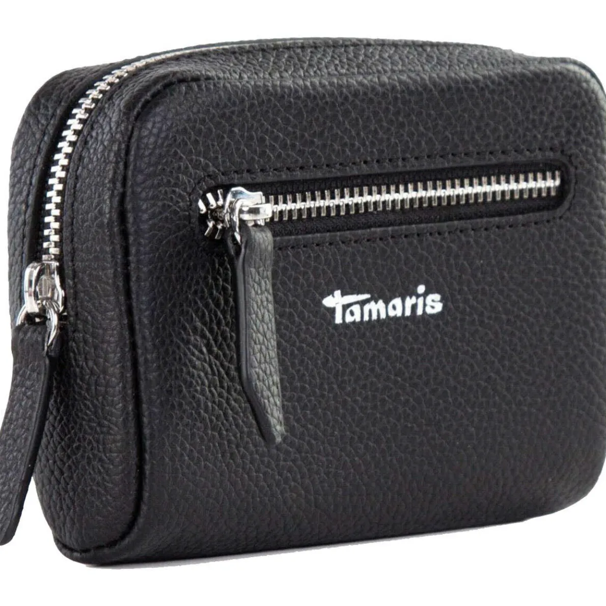 Diese kleine Damen Geldbörse Amanda von Tamaris ist aus Echtleder in Schwarz gefertigt.