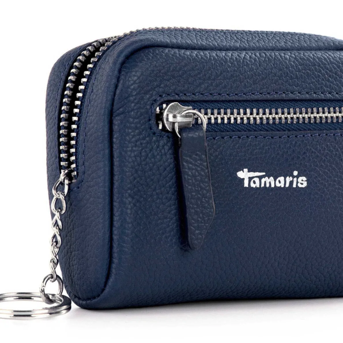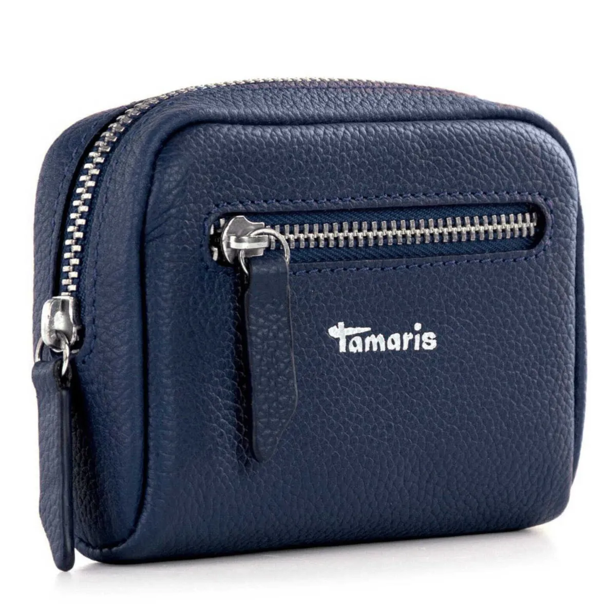 Diese kleine Damen Geldbörse Amanda von Tamaris ist aus Echtleder in Blau gefertigt.