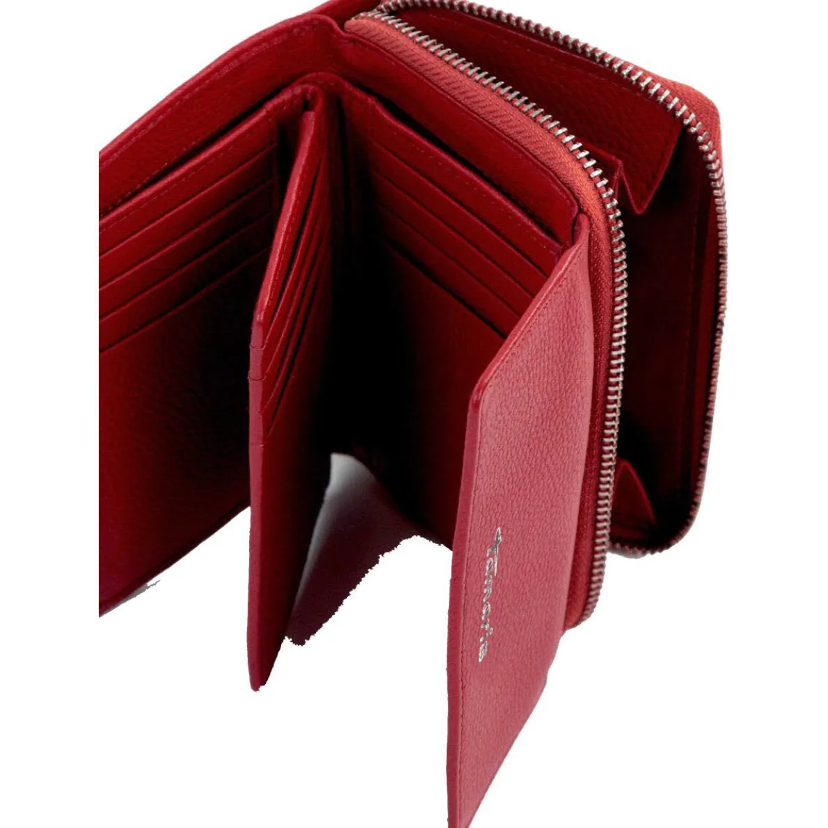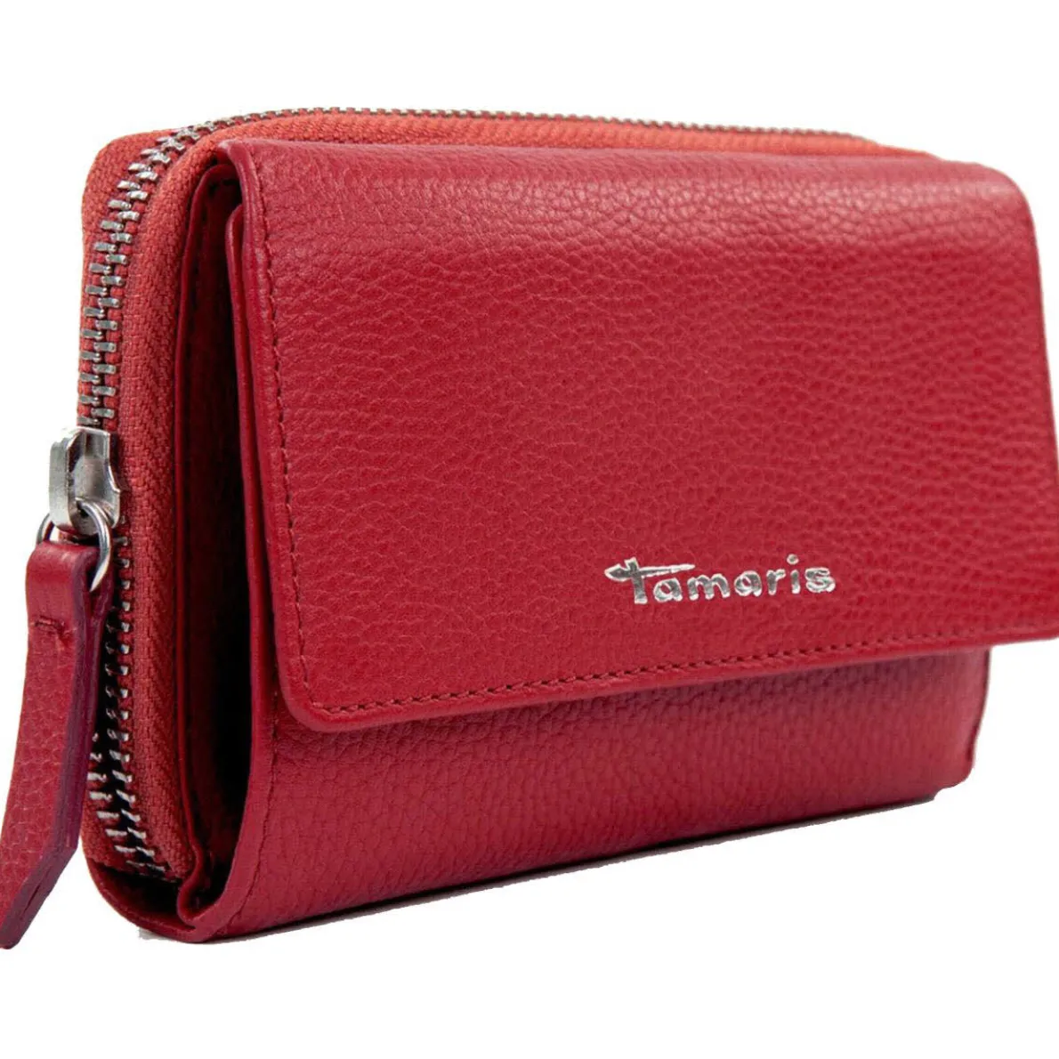 Gefertigt aus authentisch genarbten Echtleder in Rot ist sie mit dem Tamaris Logo versehen.