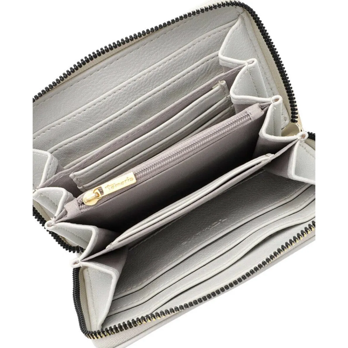 Diese schicke Damen Geldbörse Franca von Tamaris in hellem Grau überzeugt durch ihr schlichtes Design.