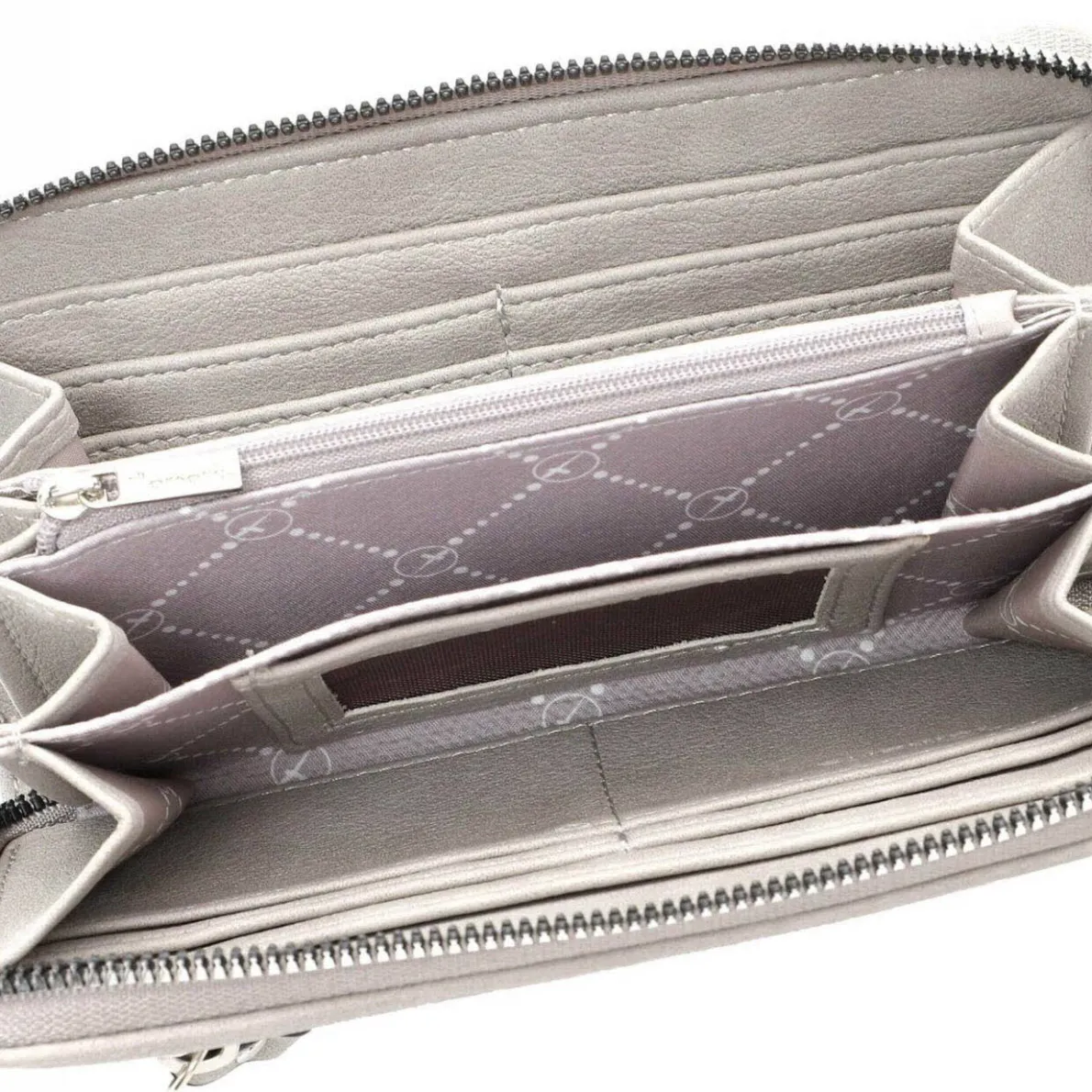 Das Portemonnaie lässt sich durch einen umlaufenden Reißverschluss öffnen und schließen. Das Innenleben besteht aus großen Fächern für Geldscheine und zahlreichen kleinen Fächern für Karten und Ähnliches. Für Kleingeld verfügt die Langbörse über ein separates Innenfach mit Reißverschluss. An der Vorderseite befindet sich ein weiteres kleines Fach, was ebenfalls mit einem Reißverschluss geschlossen werden kann. Daran befindet sich ein toller Tamaris Anhänger.