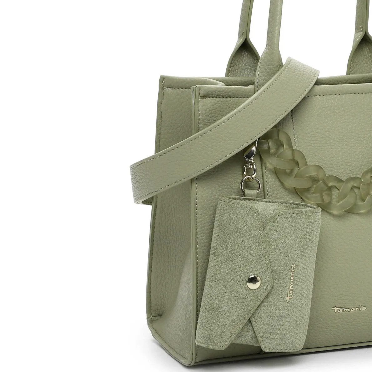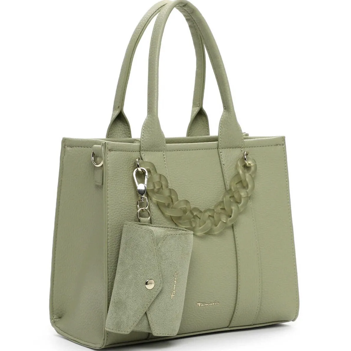 Die Flavia aus dem Hause Tamaris ist eine schicke Damen Henkeltasche aus hochwertigem Kunstleder in Grün, die mit besonderen Details überzeugt.