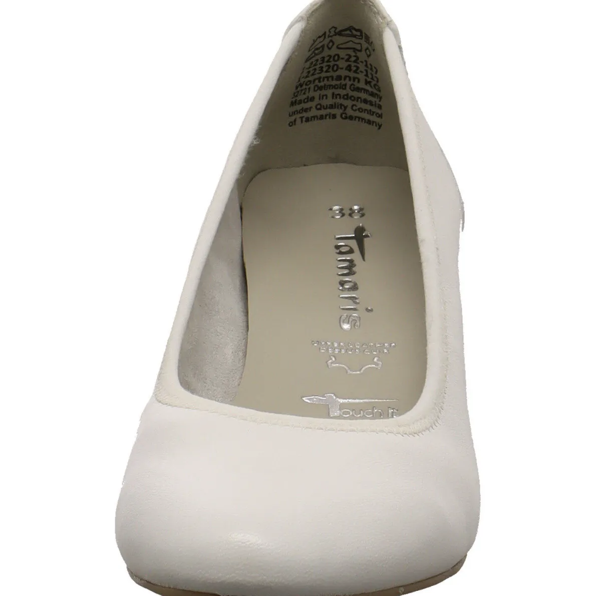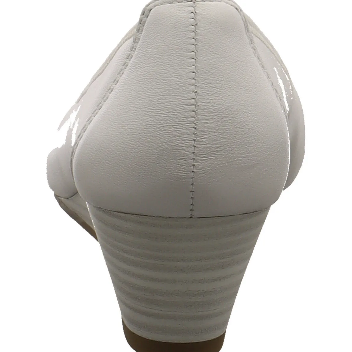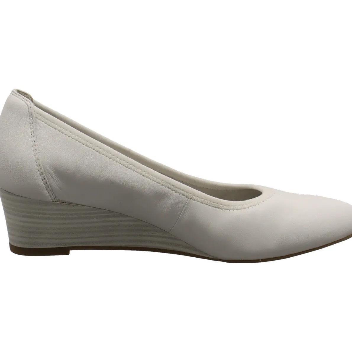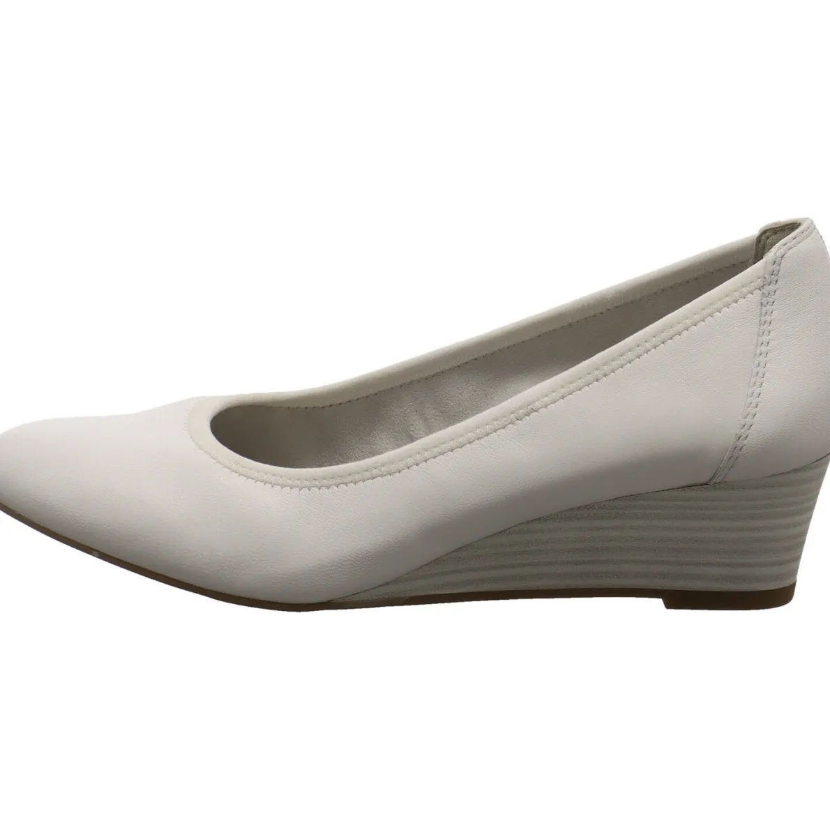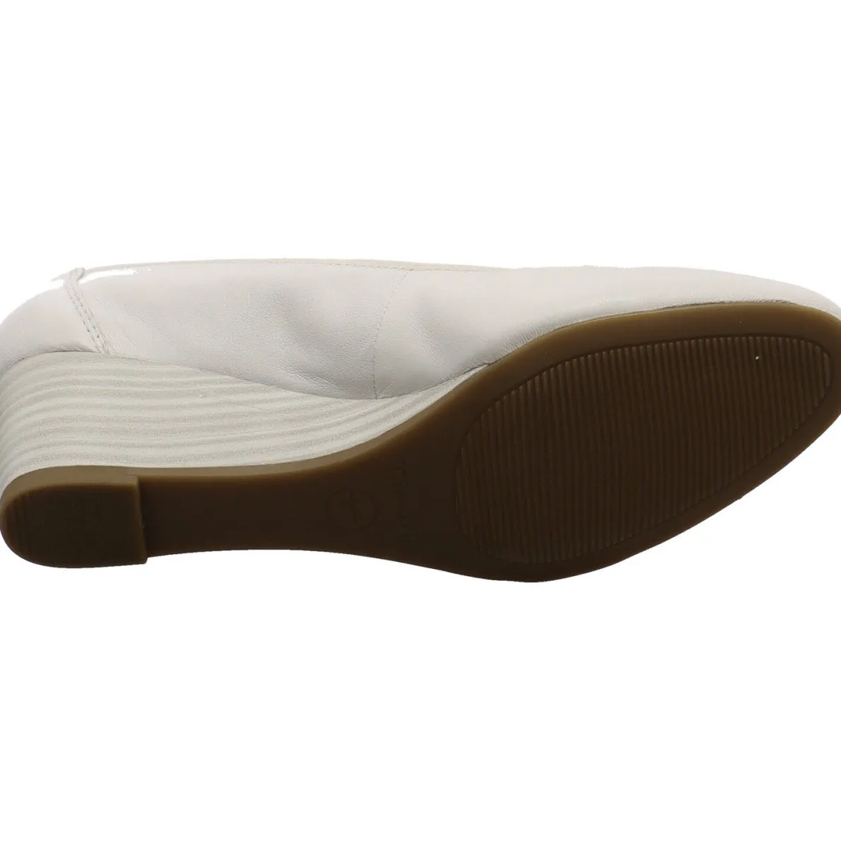 Die Borage sind puristische Keil Pumps von Tamaris in weiß aus geschmeidigem Glattleder und mit leicht abgerundeter Schuhspitze.