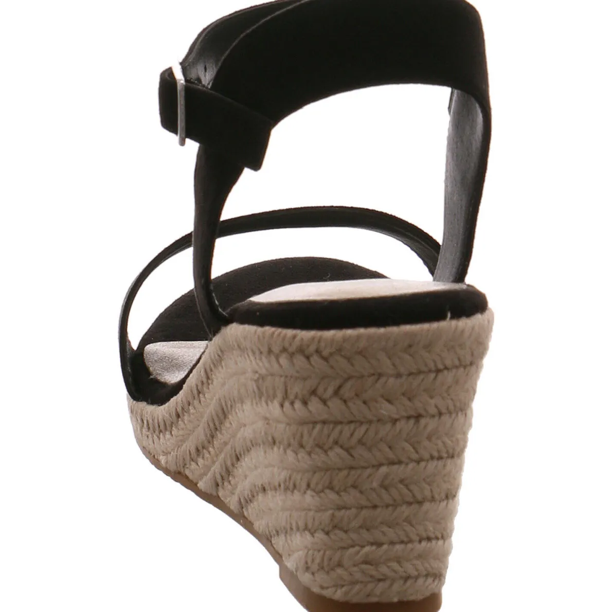 Der bequeme Keilabatz begeistert durch seine angesagte Bastoptik und bildet einen tollen Kontrast zum Obermaterial. Der verstellbare Riemen am Knöchel verhilft zu einem leichten Ein- und Ausstig und verspricht perfekten Halt.