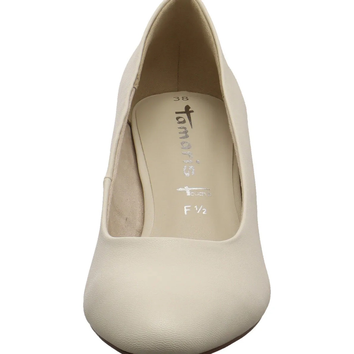 Durch seine Farbe in Creme Weiß, passt er perfekt zu jedem Anlass. Er wurde aus Kunstleder gefertigt und mit einer weichen Touch it Innensohle ausgestattet. Diese bietet dir den ganzen Tag einen tollen Tragekomfort. Der Trichterabsatz hat eine ideale Höhe und zaubert lange Beine.