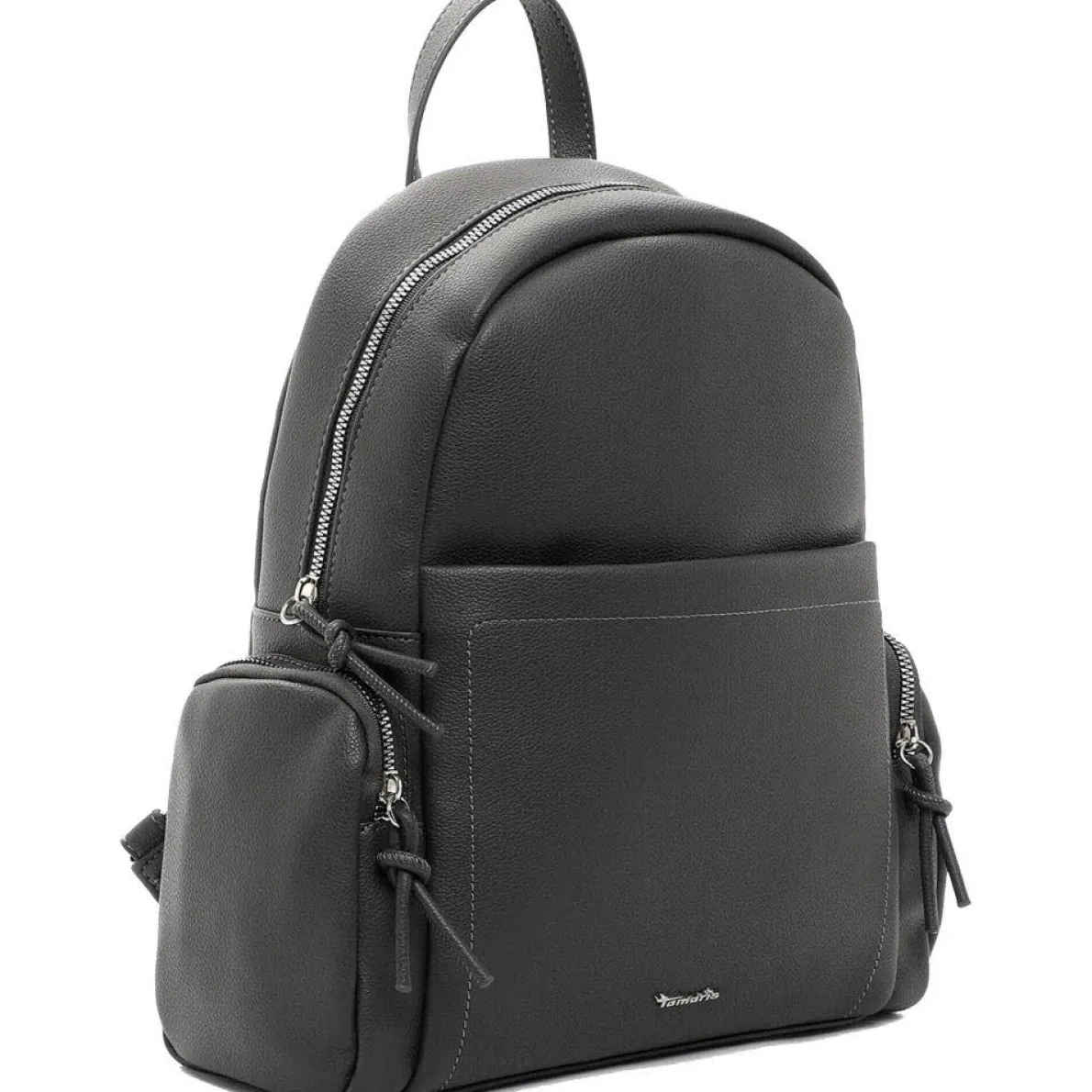 Das grob genarbte Obermaterial in Grau verleiht dem Rucksack einen klassischen und zeitlosen Look.