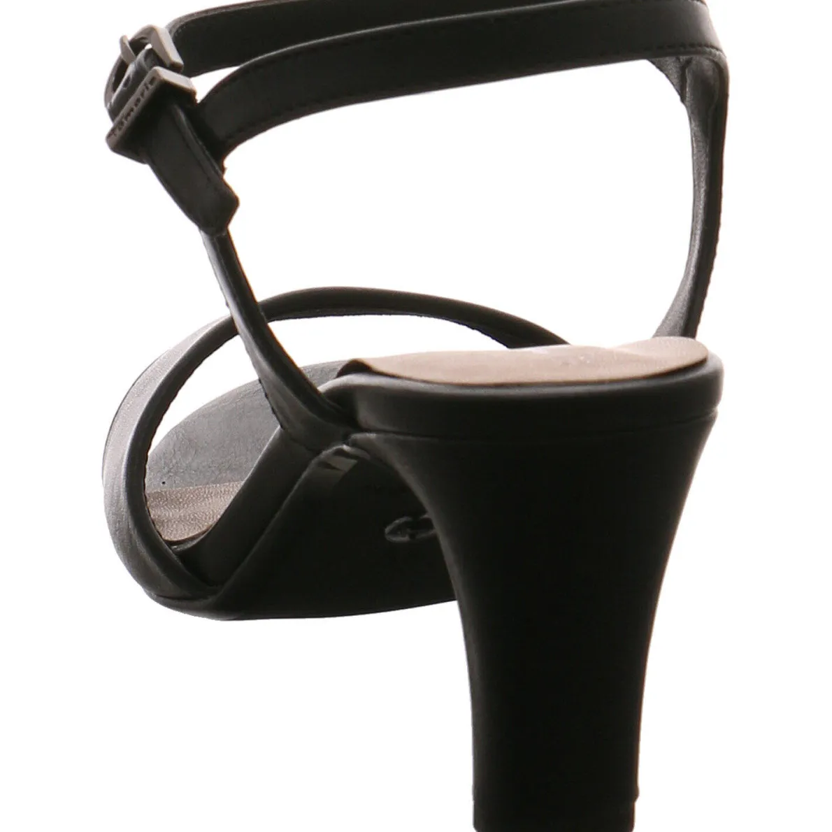 Mit der kleinen Schnalle in Silber am Knöchelriemchen und einem dezenten Dehngummi, ist ein leichter EInstieg möglich und der Schuh kann optimal an den Fuß angepasst werden.