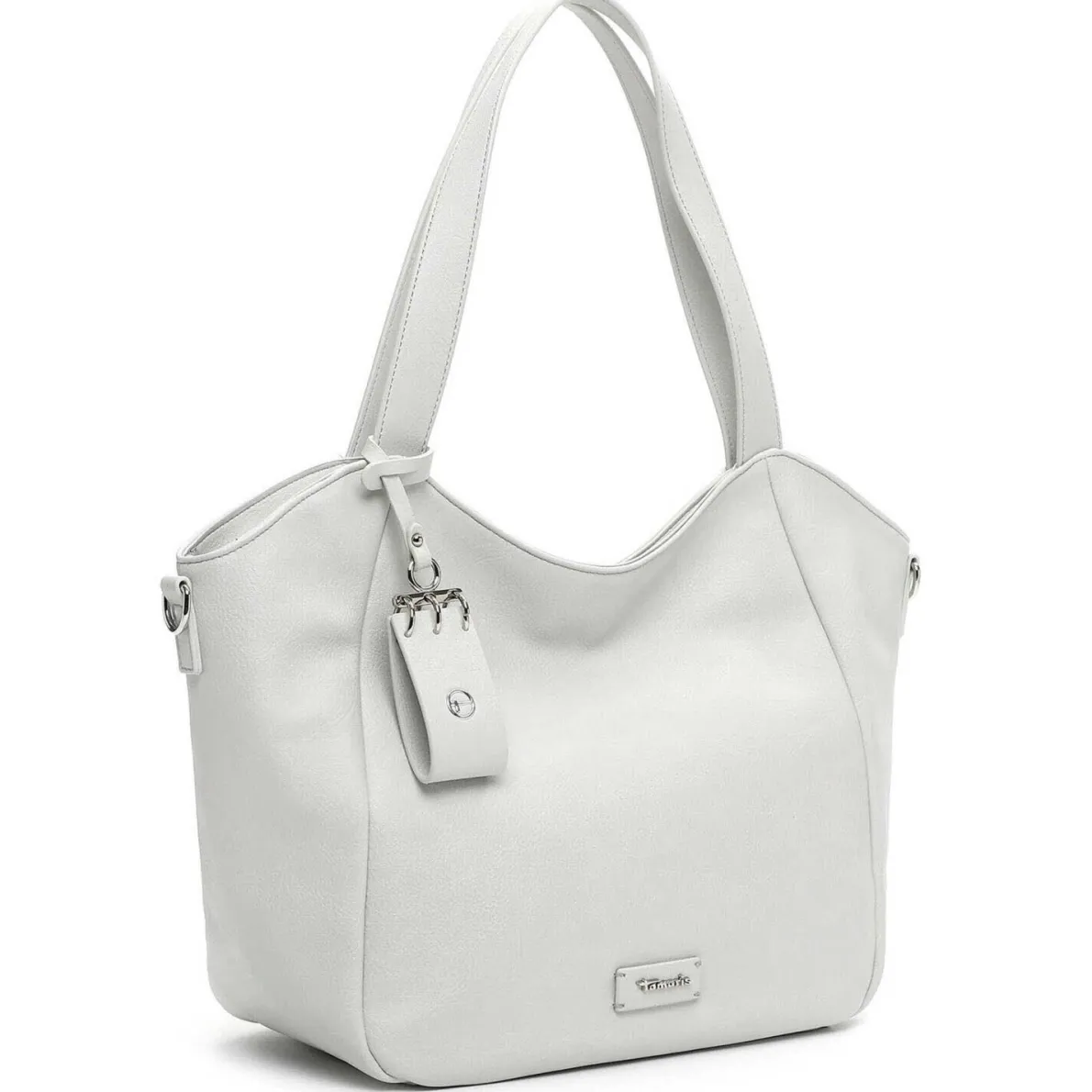 Die Felice ist eine Damen Schultertasche von Tamaris aus hochwertigem Kunstleder in Grau. Die individuelle Narbung des Kunstleders und der schicke Anhänger mit Tamaris Logo machen sie zu etwas ganz Besonderem. Das Hauptfach kann durch einen Reißverschluss geöffnet werden und der stabile Taschenboden sorgt für einen festen Stand. Die Handtasche bietet Platz für alle Dinge, auf die du im Alltag oder beim Shopping nicht verzichten möchtest. Durch den mitgelieferten Umhängegurt kann die Handtasche auch crossover getragen werden.