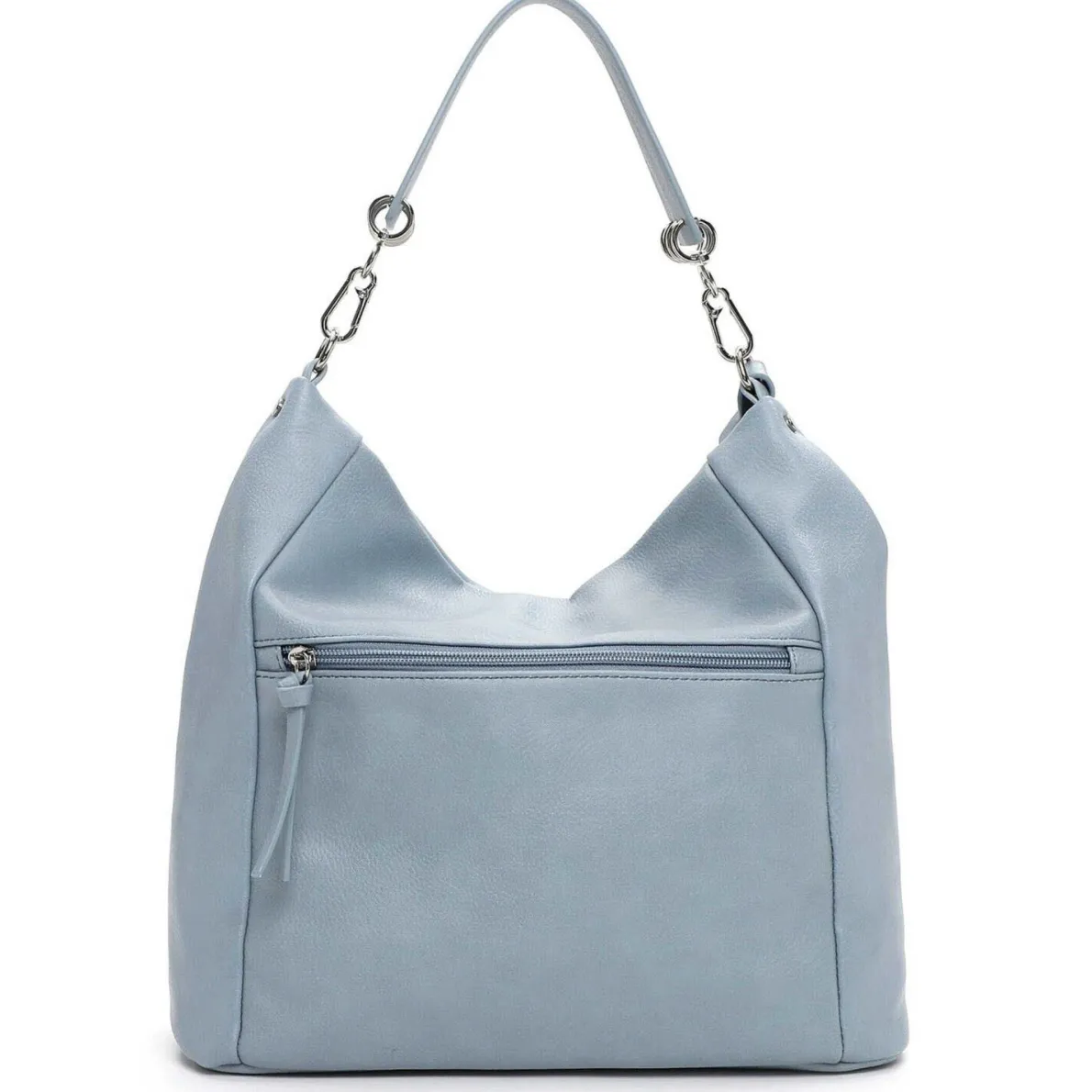 Die Felice ist eine Damen Schultertasche von Tamaris aus hochwertigem Kunstleder in Crystal Blau. Die authentische Narbung des Kunstleders und der schicke Anhänger mit Tamaris Logo machen die Handtasche zu etwas ganz Besonderem. Das Hauptfach kann durch einen Reißverschluss geöffnet werden und der stabile Taschenboden sorgt für einen festen Stand. Die Handtasche bietet Platz für alle Dinge, auf die du im Alltag oder beim Shopping nicht verzichten möchtest. Durch den mitgelieferten Umhängegurt kann die Handtasche auch crossover getragen werden.