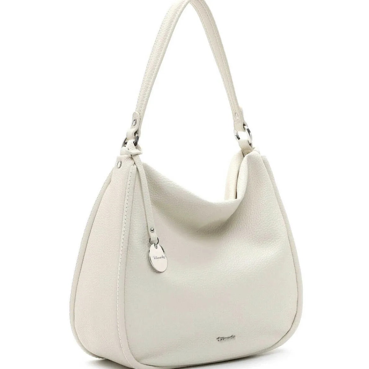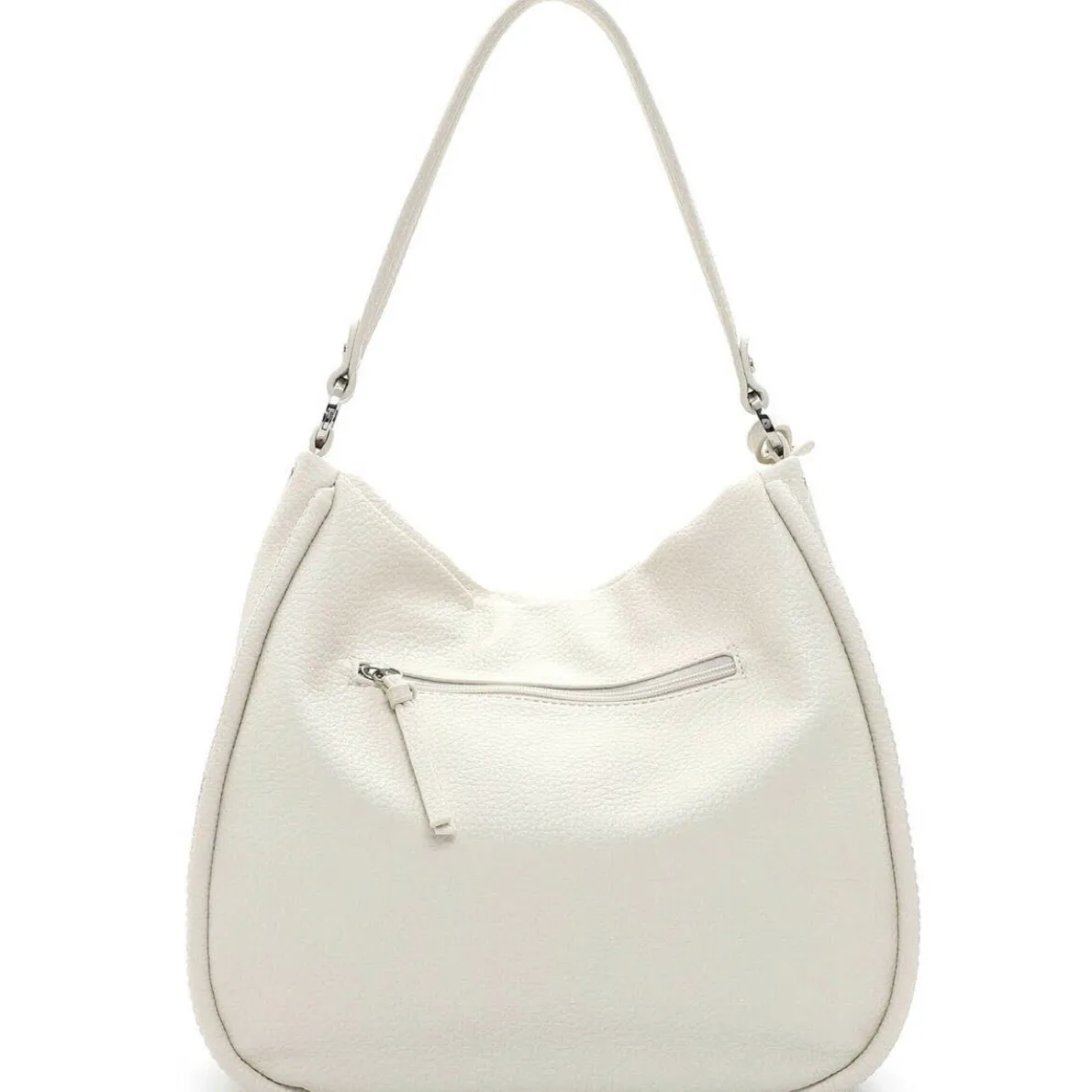 Die Felicitas ist eine Damen Schultertasche von Tamaris aus hochwertigen Kunstleder in Ecru Beige. Die individuelle Narbung des Kunstleders macht sie zu etwas ganz Besonderem. Das Hauptfach kann durch einen Reißverschluss geöffnet und geschlossen werden und der stabile Taschenboden sorgt für einen stabilen Stand. Die Handtasche bietet Platz für alle Dinge, auf die du im Alltag nicht verzichten möchtest. Durch den mitgelieferten Umhängegurt in Web-Optik in Braun und Blau kann die Henkeltasche auch crossover getragen werden.