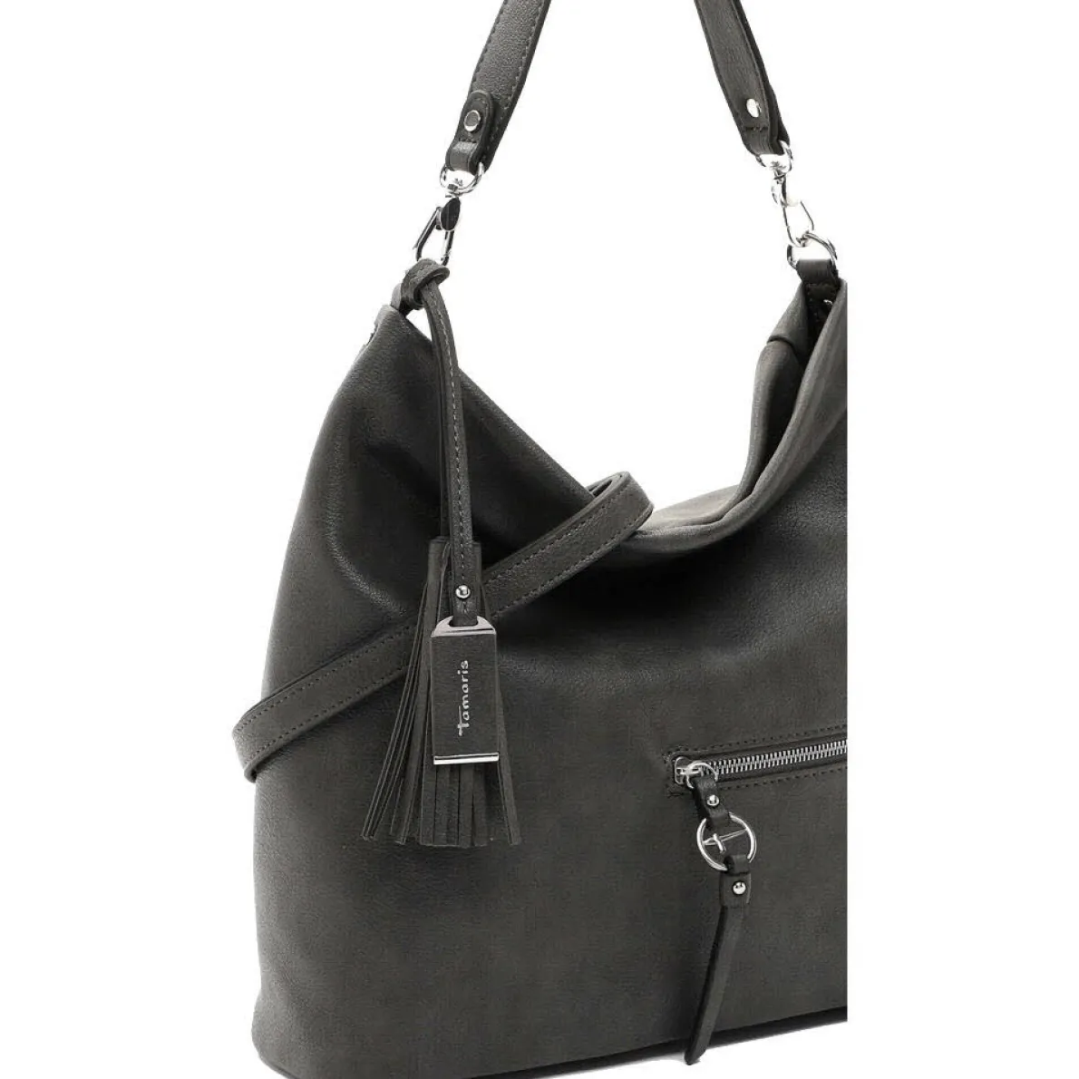 Die Nele aus dem Hause Tamaris ist eine schicke Damen Schultertasche aus hochwertigem Kunstleder in Grau.
