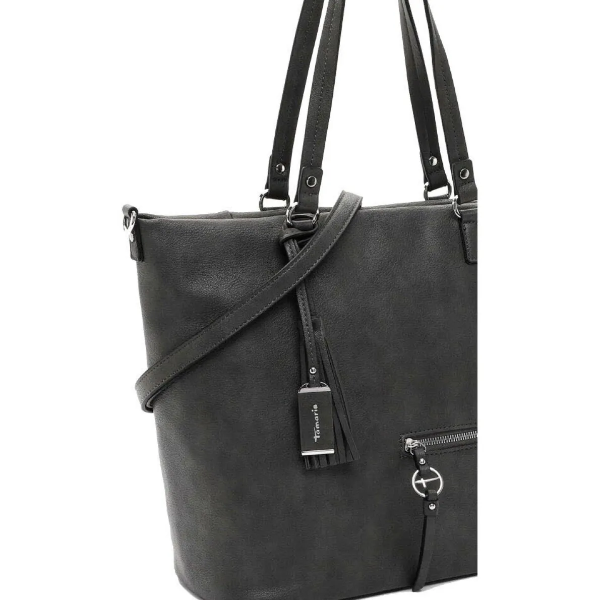 Die Nele aus dem Hause Tamaris ist eine schicke Damen Schultertasche aus hochwertigem Kunstleder in Grau.