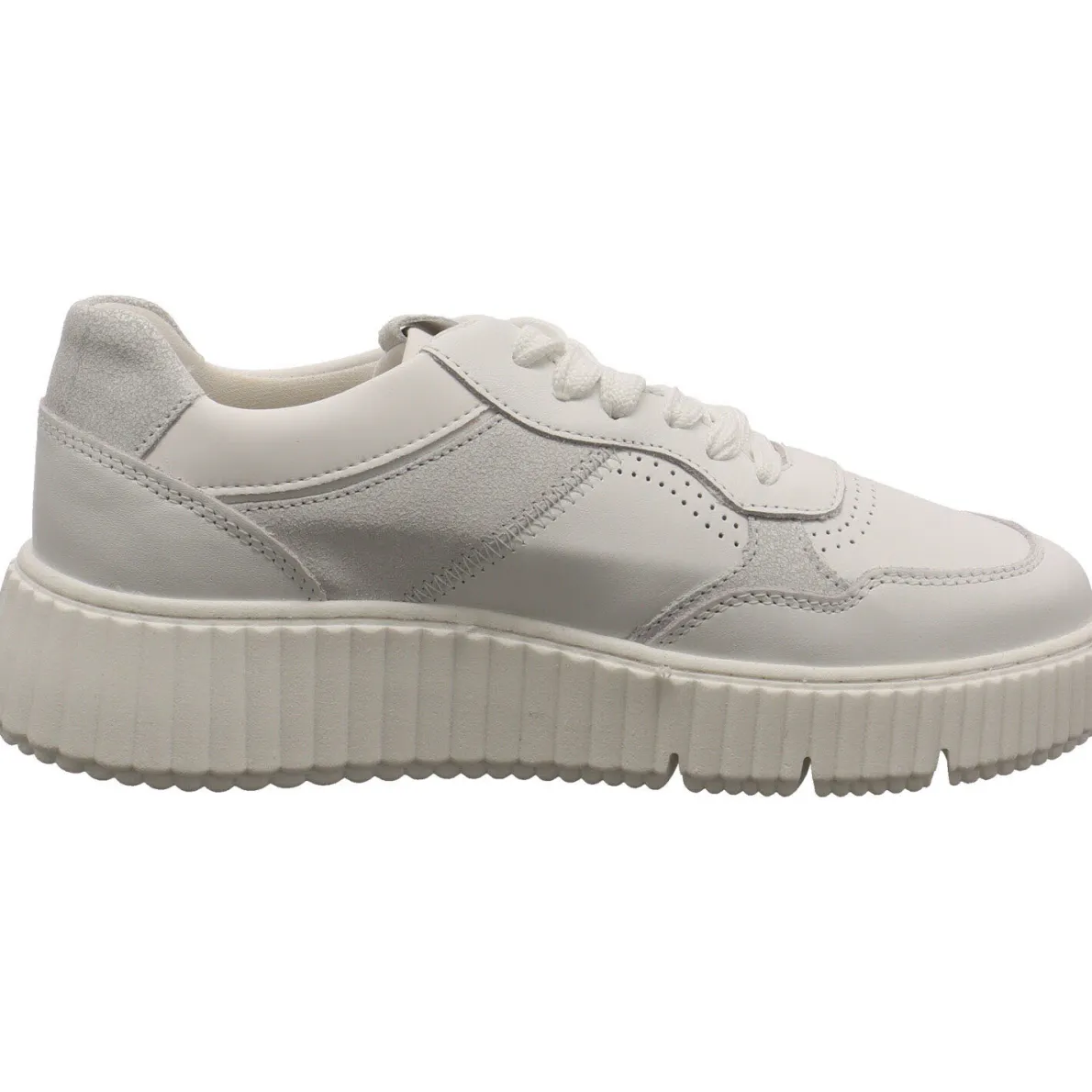Er begeistert und durch seine tolle Ovleray Optik mit verschiedenen Haptiken und Farbnuancen, aus eine Mix aus Echtleder und Synthetik in Weiß und Grau.