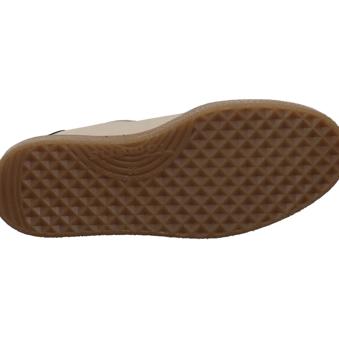 Er wurde aus hochwertigem Echtleder in Beige gefertigt und ist an der Seite mit einem Textil Einsatz in Schwarz versehen.