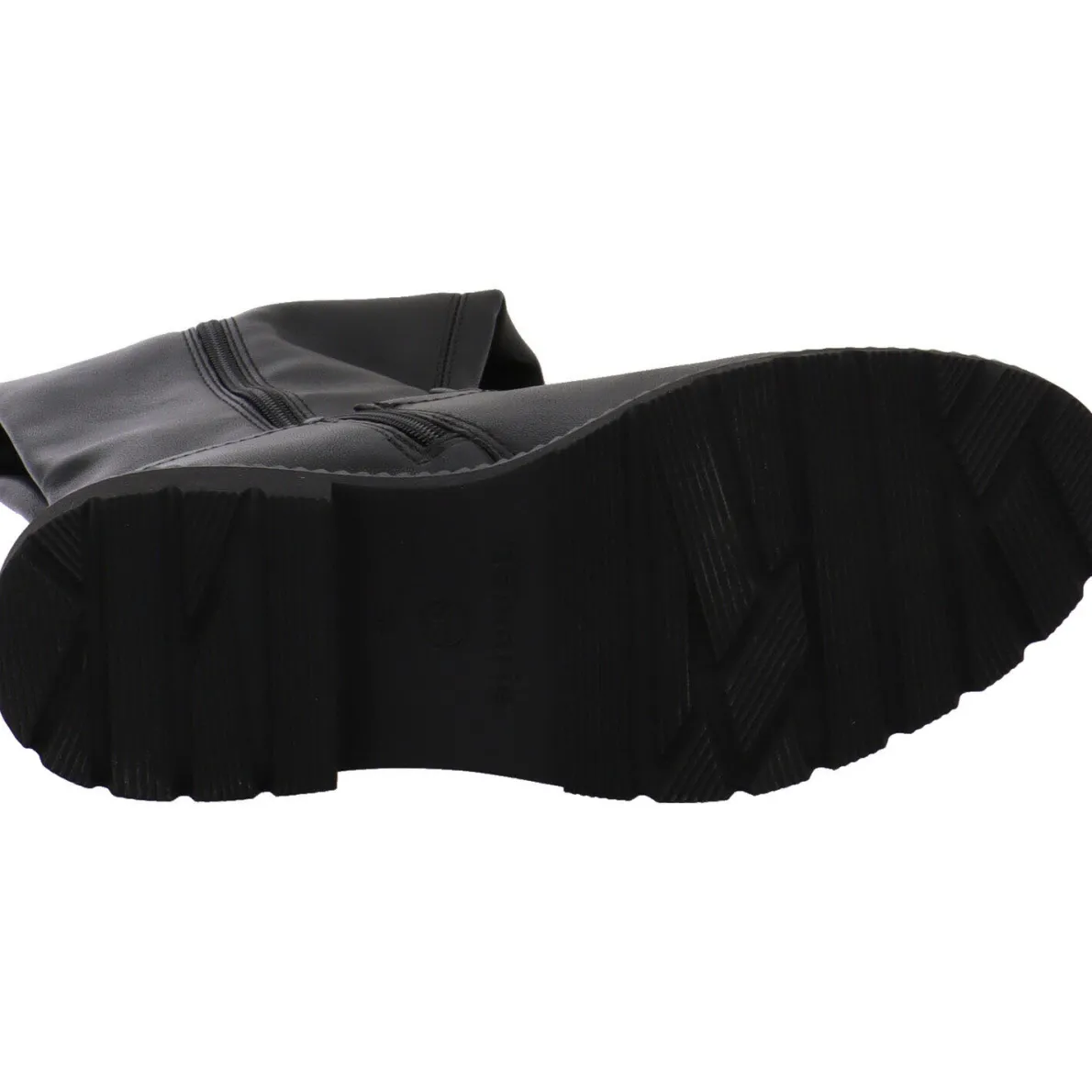 Stilvoll, bequem und perfekt für den Herbst, ist dieser modische Damen Stiefel von Tamaris. Er wurde aus Kunstleder in Schwarz gefertigt, mit einem praktischen Reißverschluss für müheloses An- und Ausziehen. Der Schaft verfügt über einen sanften Stretchanteil, der sich flexibel an deine Wadenweite anpasst und einen komfortablen, sicheren Halt bietet. Vielseitig kombinierbar – ideal zu Skinny Jeans, Röcken oder Leggings.