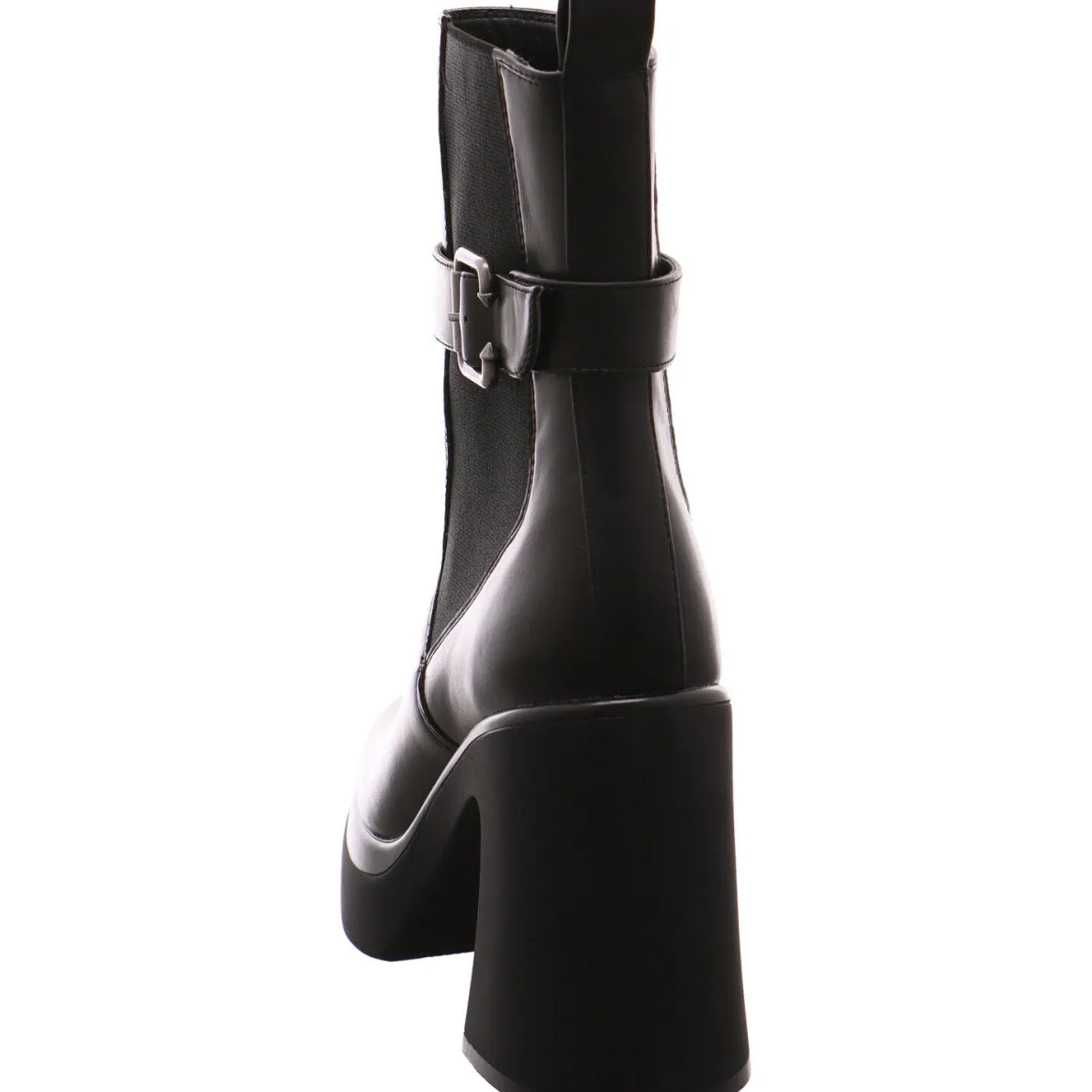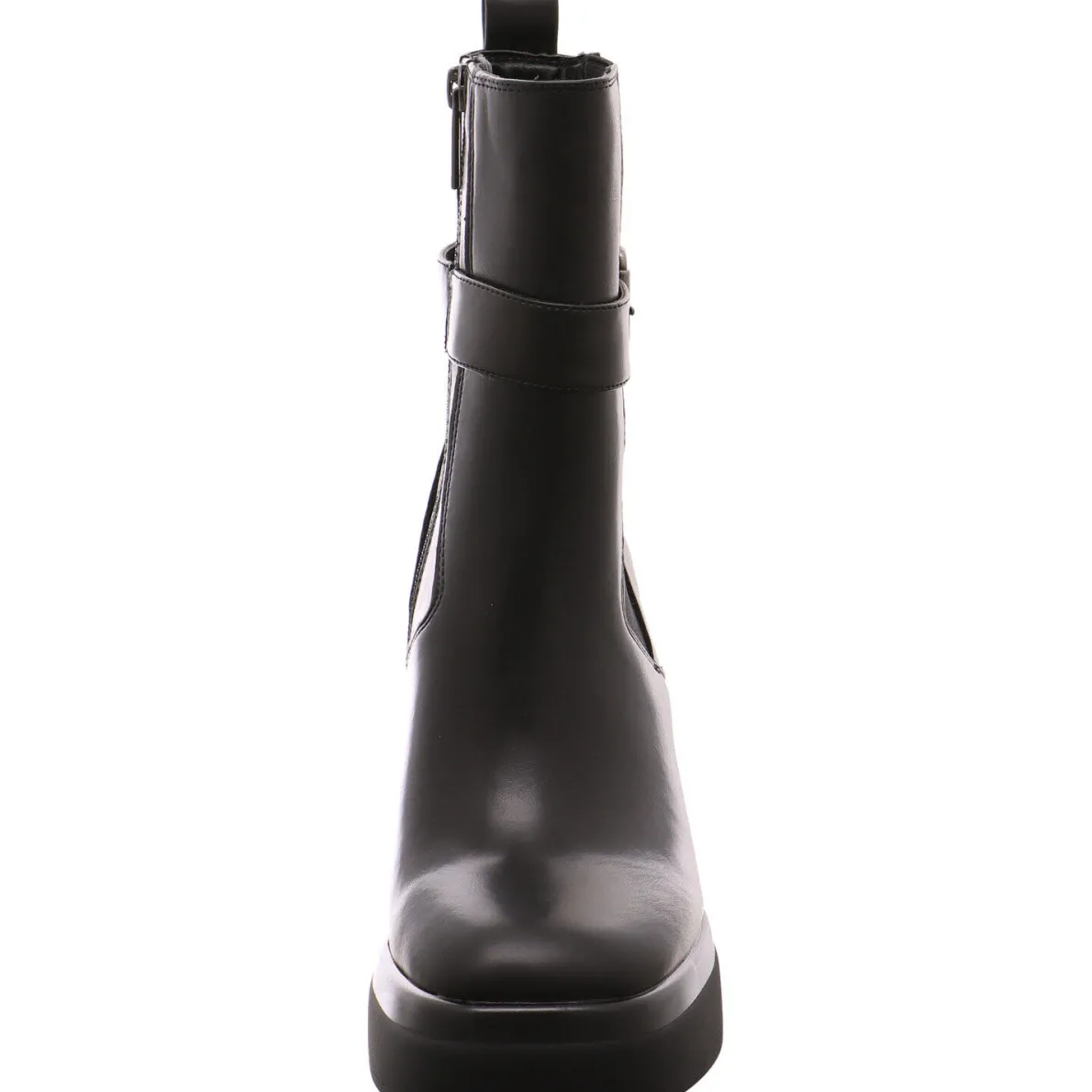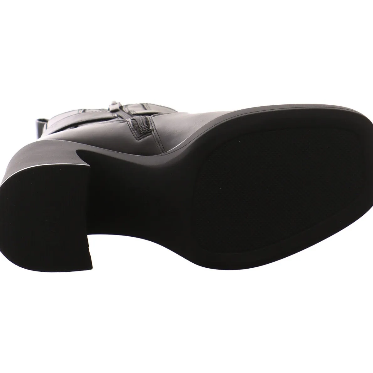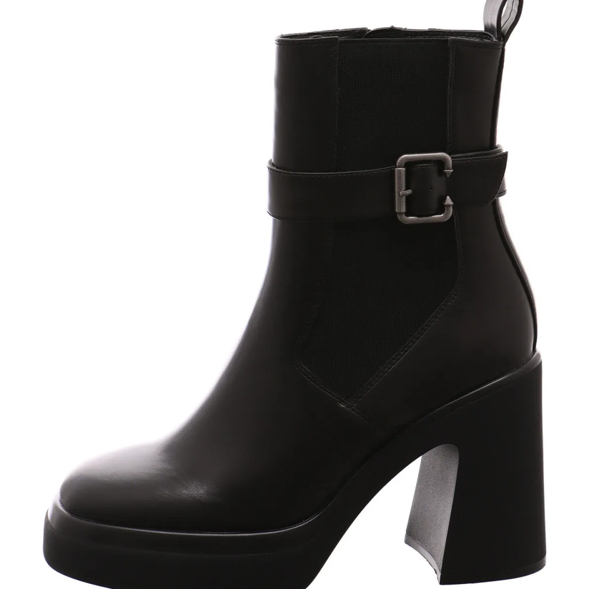 Gefertigt aus pflegeleichtem Kunstleder in Schwarz, ist sie auf der einen Seite mit einem Gummipanel und auf der anderen Seite mit einem seitlichen Reißverschluss versehen der für einen leichten Einstieg sorgt. Die kleine Zierschnalle gibt dem sonst eher schlichten Schuh eine besondere Note und macht ihn zum Hingucker.