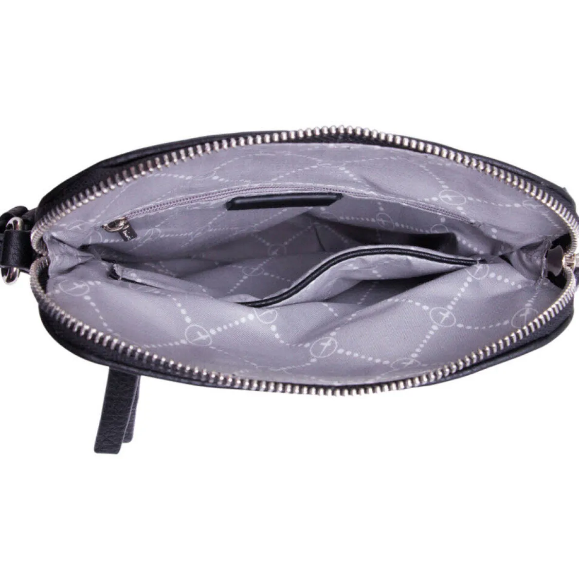 Ein Reißverschlussfach und ein Steckfach innen