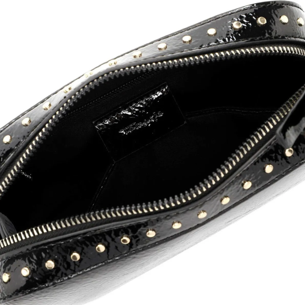 Eyecatcher sind das Obermaterial mit einem glänzenden Lack-Finish und die Nieten in Gold.