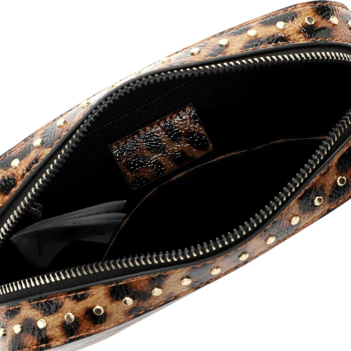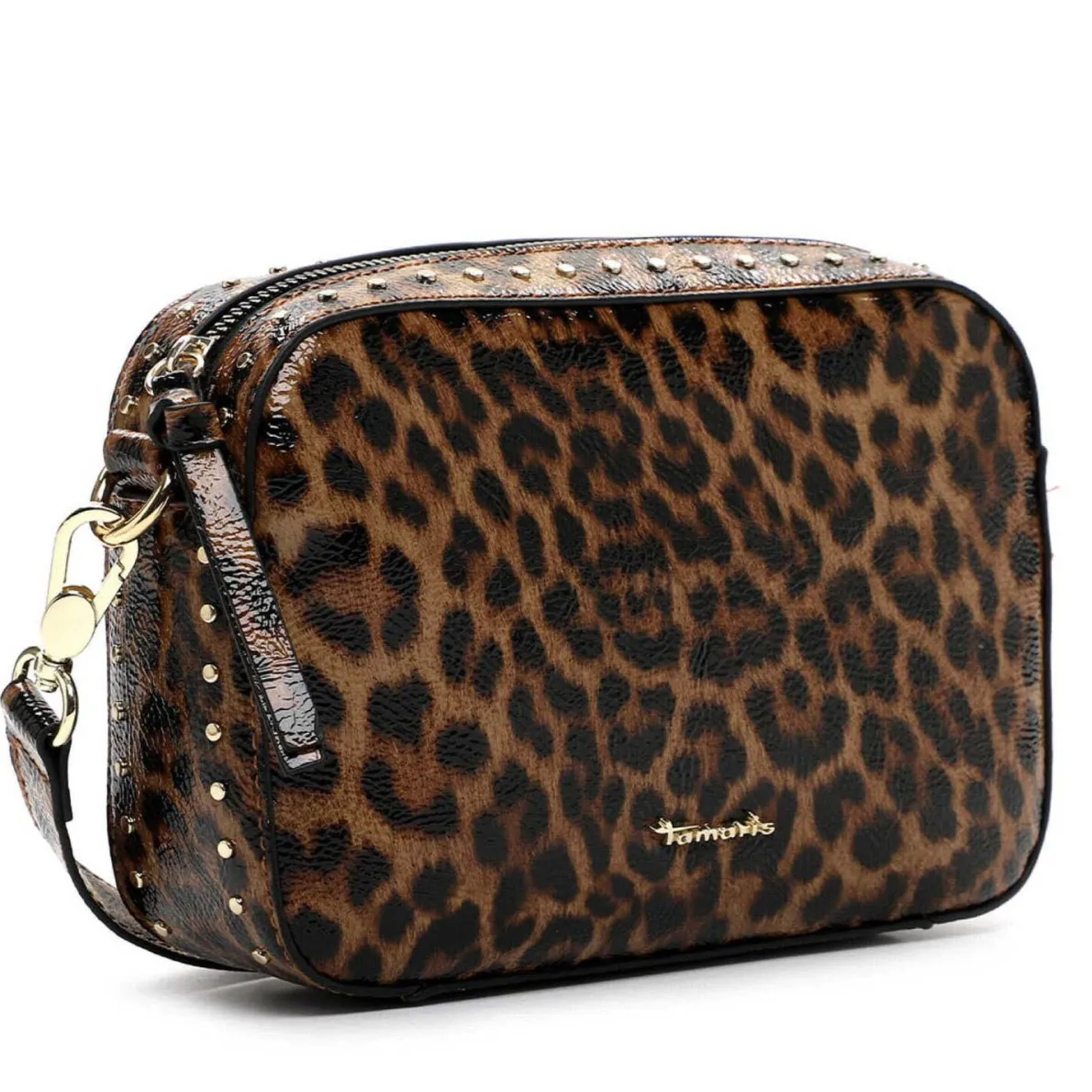 Eyecatcher sind das Obermaterial mit Leo-Muster mit einem glänzenden Lack-Finish und die Nieten in Gold.