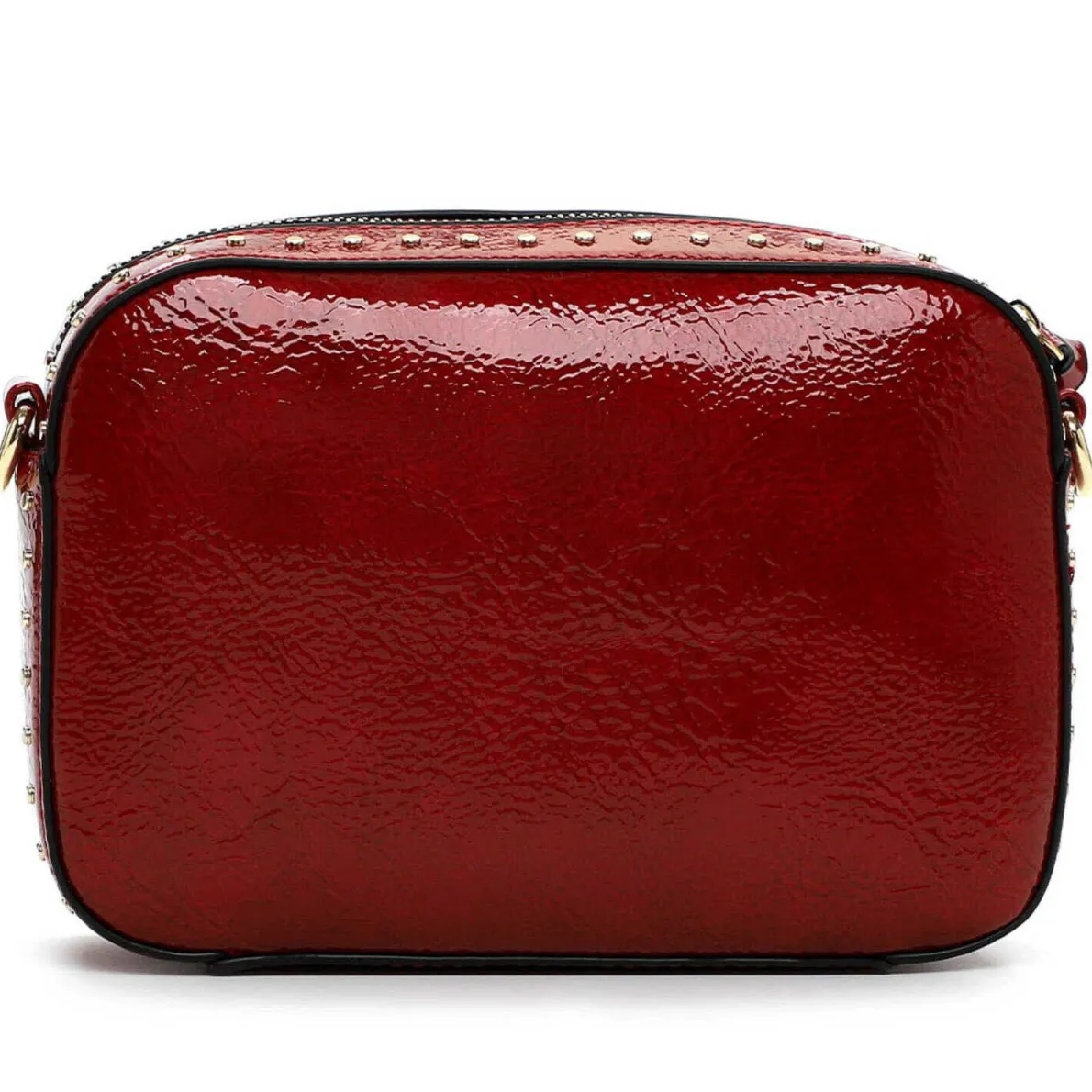 Eyecatcher sind das Obermaterial mit einem glänzenden Lack-Finish und die Nieten in Gold.