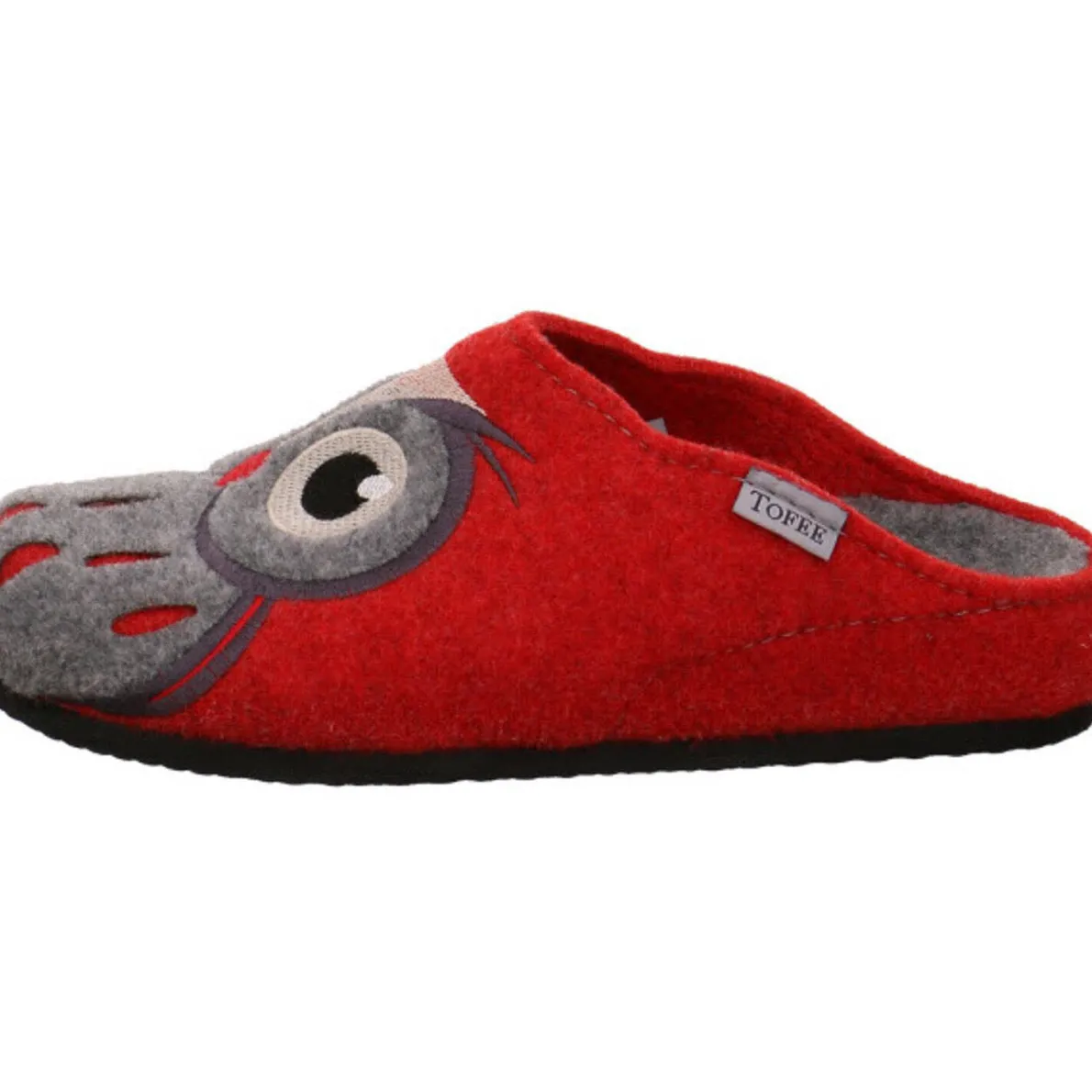 Als Eyecatcher auf dem robusten und langlebigen Obermaterial aus Filz in rot dient die gestickte Eule, die dem Schuh das gewisse Etwas verleiht.