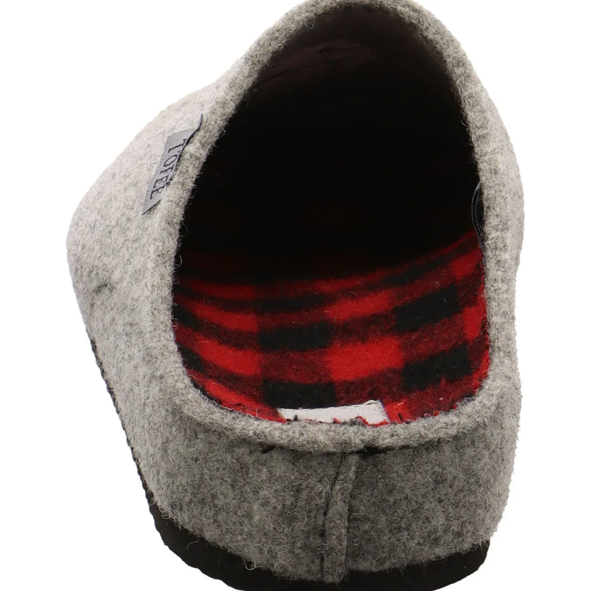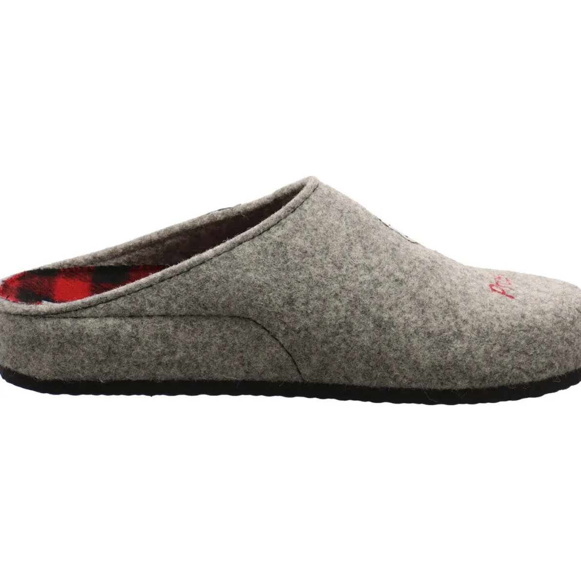 Als Eyecatcher auf dem robusten und langlebigen Obermaterial aus ökologischem Naturwollfilz in Grau dient der farblich abgesetzte Bierkrug mit dem unterlegten Schriftzug Prost, der dem Schuh das gewisse Etwas verleiht. Ein weiteres Highlihgt ist das Rot Karierte Innenfutter.