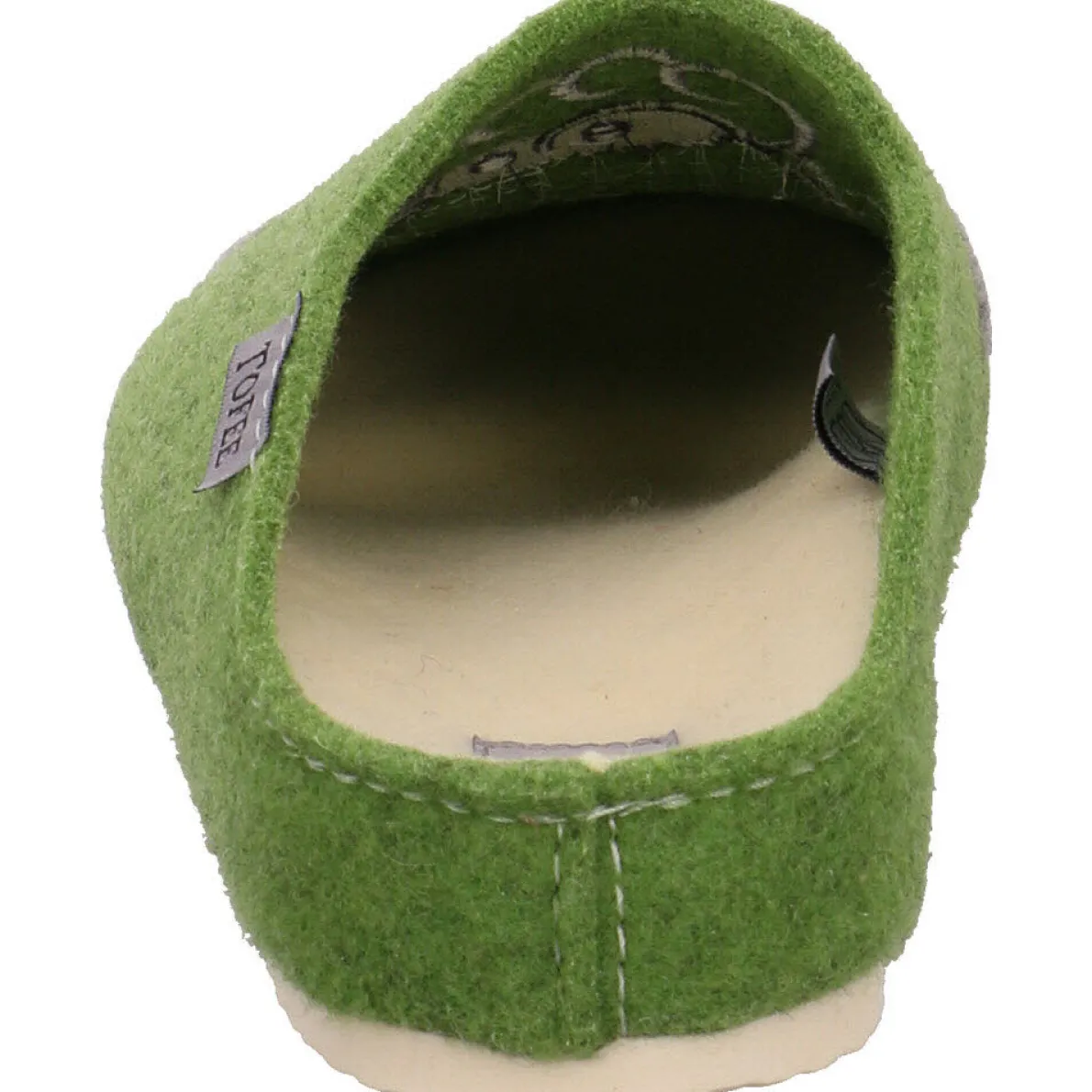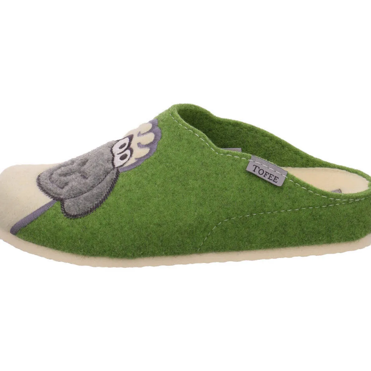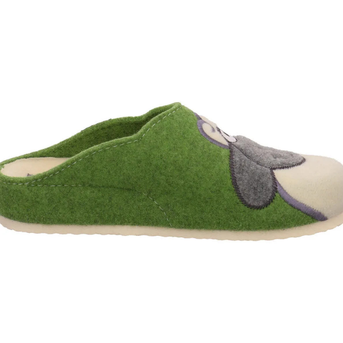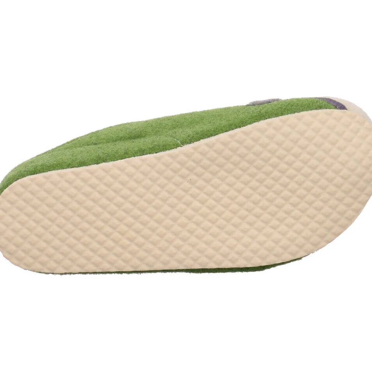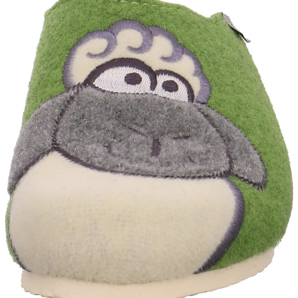 Als Eyecatcher auf dem robusten und langlebigen Obermaterial aus Filz in Grün dient das süße gestickte Schaf, es verleiht dem Schuh das gewisse Etwas.