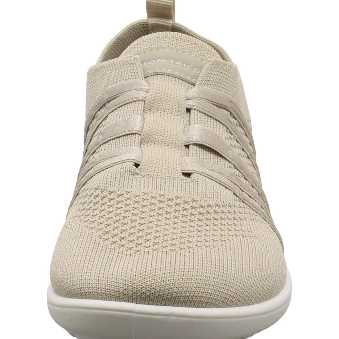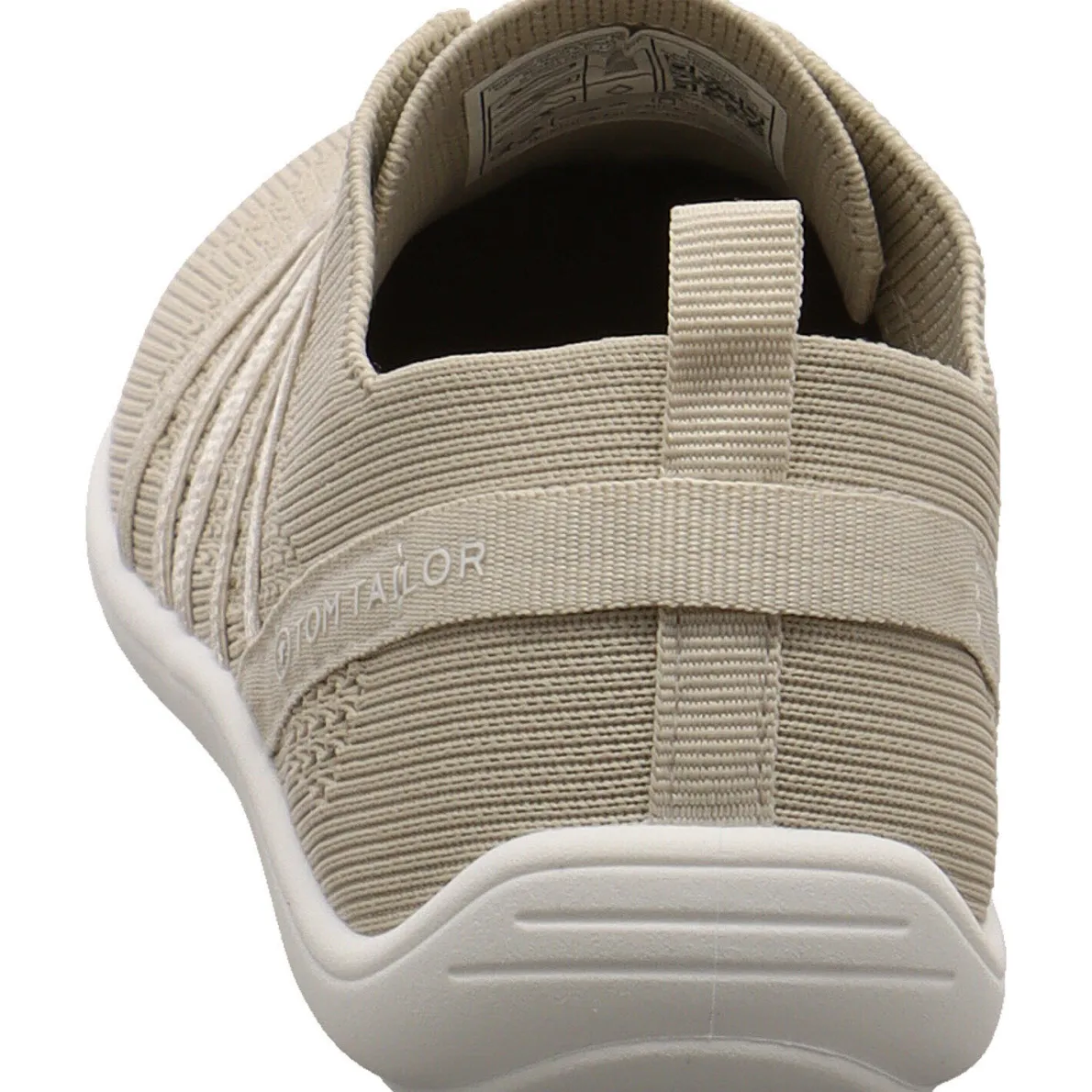 Das Obermaterial aus flexiblem Textil Mesh in Beige ein echter Hingucker. Die stabilisierenden Gummibänder ahmen eine Schnürung nach und helfen, zusammen mit der Lasche am Schaft bei einem leichten Einstieg. Die dünne Laufsohle in Weiß, hat einen leichten Grip und die Innensohle ist herausnehmbar, was ein tolles Barfußgefühl garantiert.