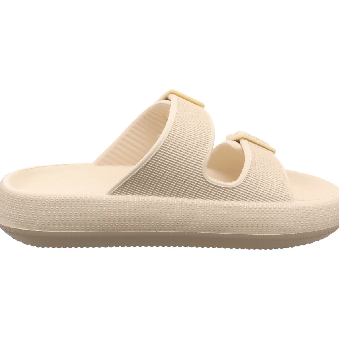 Der Schuh trocknet schnell und ist somit auch für den Einsatz im Schwimmbad bestens geeignet. Die kräftige Sohle ist ein weiteres Styling Highlight und macht den Schuh gleichzeitig super bequem. Die beiden Riemen können individuell an deinen Fuß angepasst werden.