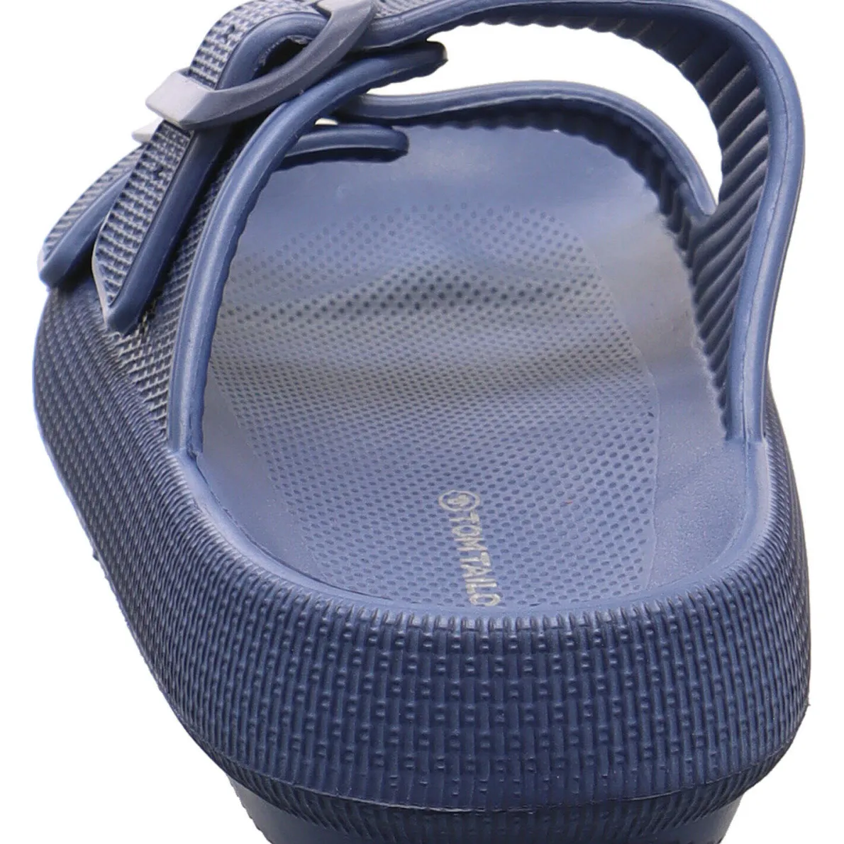 Voll im Trend liegst du mit dieser tollen Damen Pantolette in Navy Blau aus dem Hause Tom Tailor.