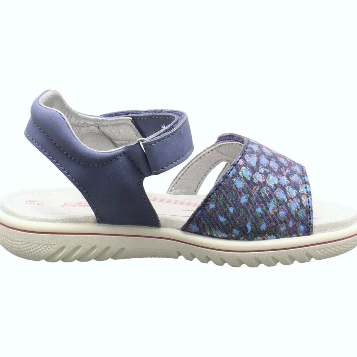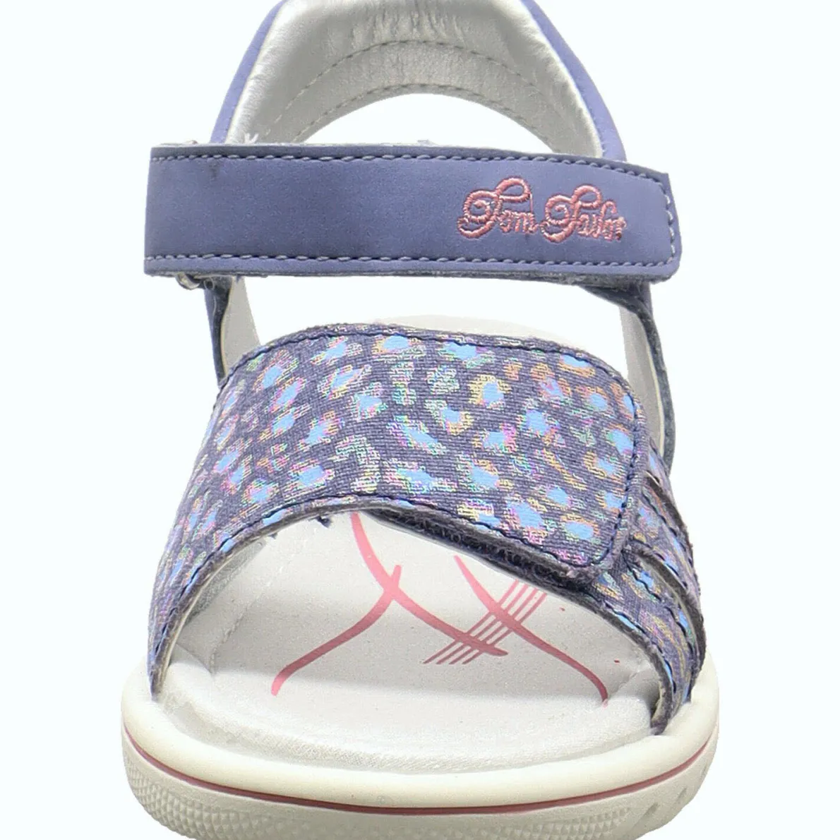 Ídeal für den Sommer, ist diese schöne Kinder Sandale von Tom Tailor. Das Obermaterial aus einem Mix aus Kunstleder und Textil in Blau ist auf dem vorderen Riemen mit einem schönen Print verziert. Dieser glitzert Regenbogen Farben und lässt jedes Mädchen Herz höher schlagen. Durch den doppelten Klettverschluss ist das An- und Ausziehen ganz einfach und der Schuh kann optimal auf den Fuß deines Kindes abgestimmt werden. Die Innensohle ist angenehm weich und die helle Gummilaufsohle gibt einen guten Halt.