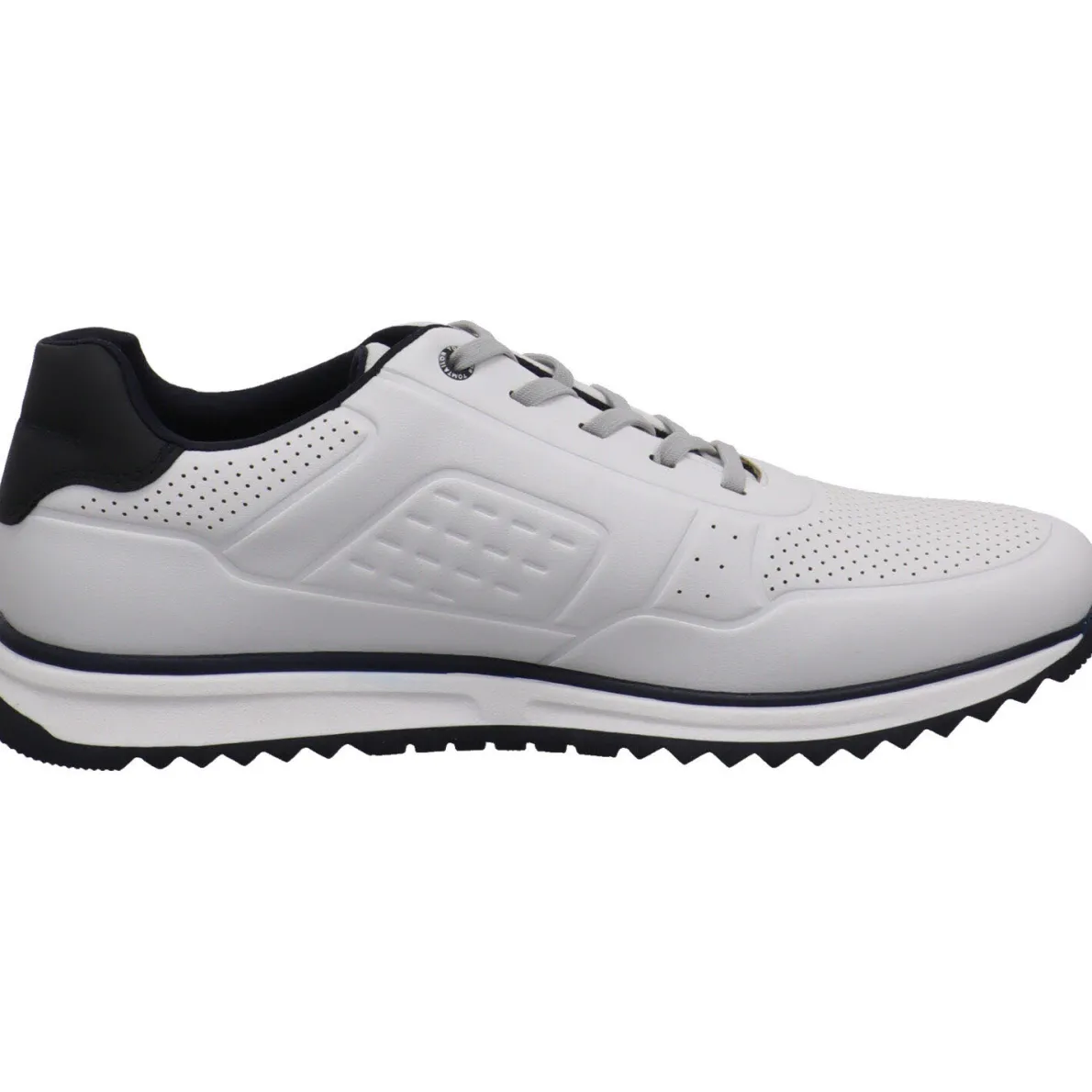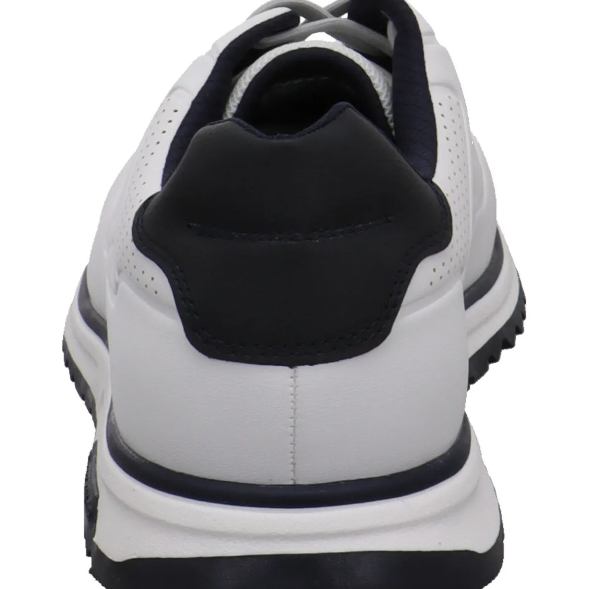 Das Obermaterial aus Kunstleder in Weiß ist mit einer individuellen Prägung und Lasercuts versehen. Das cleane Desingt wird durch die farblichen Akzente in Blau perfekt in Szene gesetzt. Der Schaft ist angenehm weich gepolstert und mit der Schnürung kannst du ihn genau auf deine Bedürfnisse anpassen.