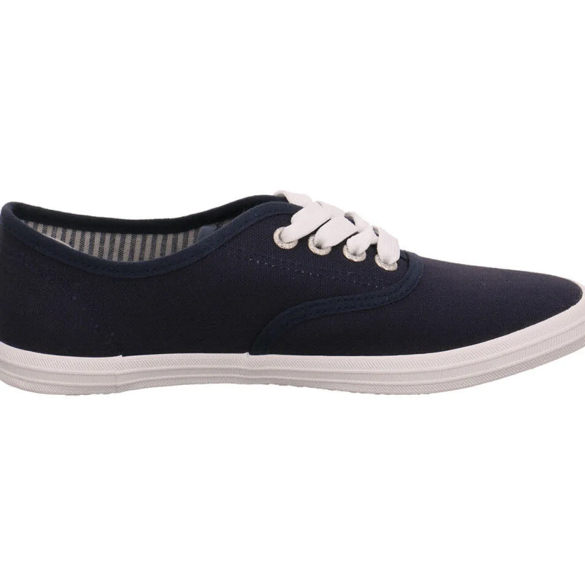 Dieser stylische Damen Canvas Sneaker in Blau von Tom Tailor rundet jedes Casual Outfit perfekt ab. Das robuste Obermaterial aus Leinen wird durch die Stickerei an der Ferse positiv unterstrichen.