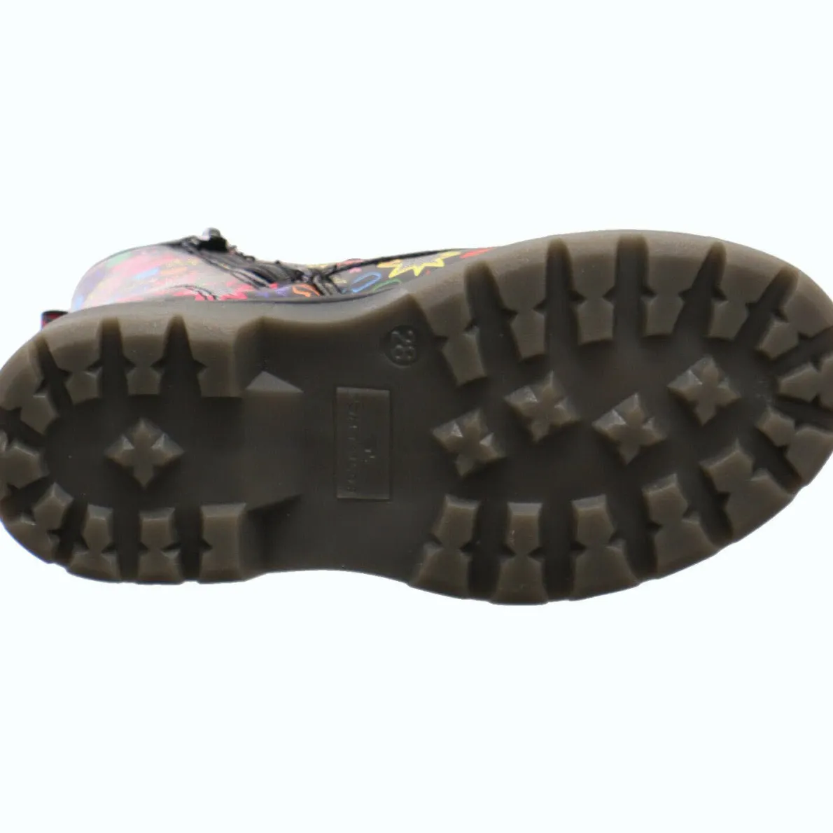 Gefertigt aus Kunstleder in Schwarz begeistert er jedes Mädchen durch seinen tollen Allover Print mit Herzen, Sternchen und vielem mehr. Weitere Highlights sind die Schnürsenkel in Schwarz und das Textilband als Einstieghilfe mit Markenaufschrift an der Rückseite vom Schaft.
