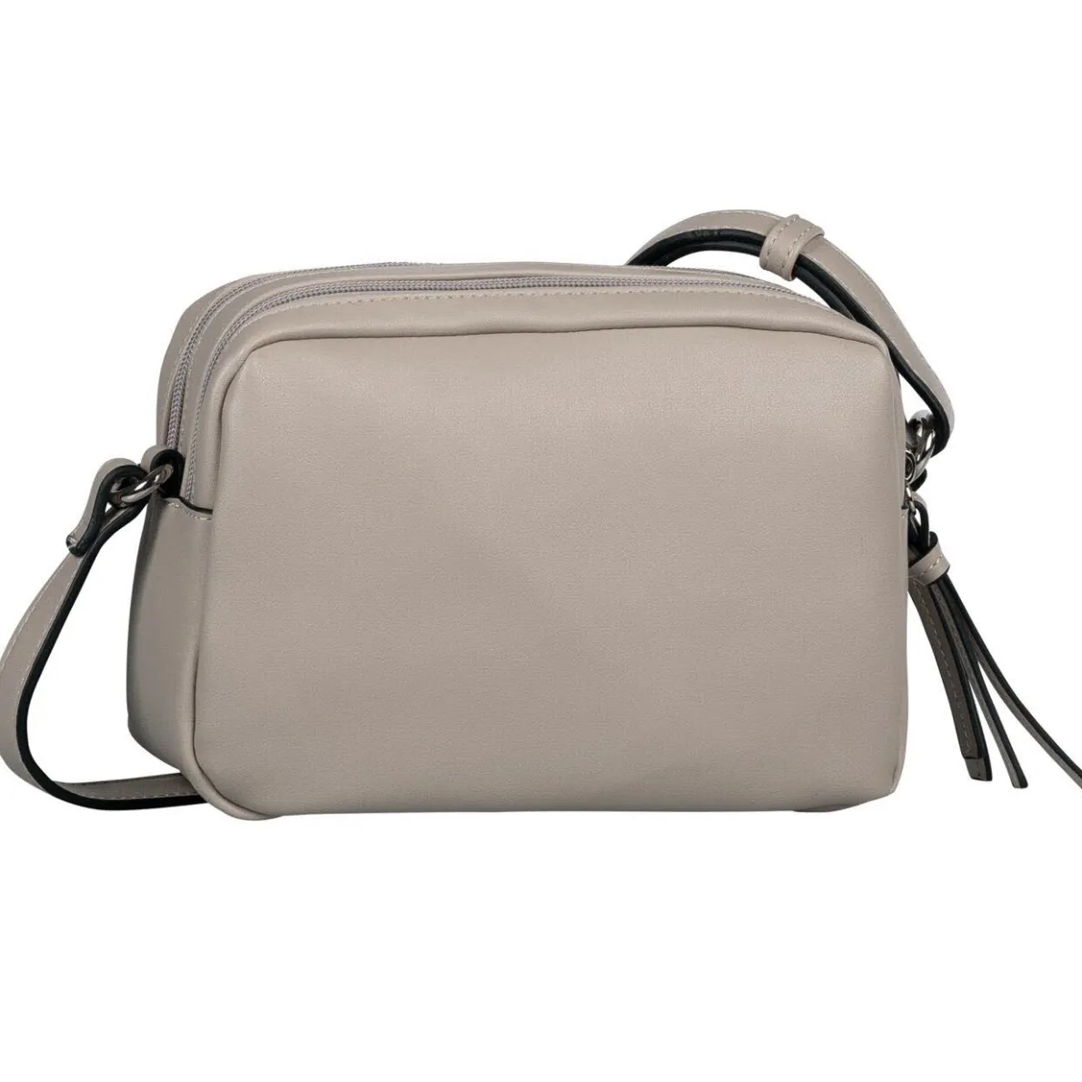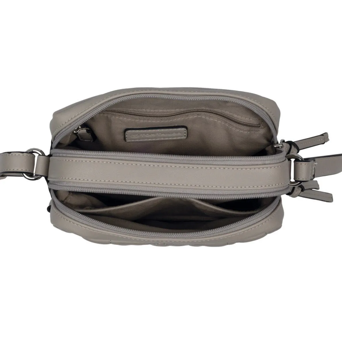 Das authentisch genarbte Kunstleder in Grau ist auf der Rückseite mit geometrisch gesteppter Wattierung versehen. Zwei Hauptfächer werden mit Reißverschluss geschlossen und bieten Platz für alles, worauf du im Alltag nicht verzichten möchtest. Durch den praktischen, verstellbaren Umhängegurt kann die Tasche auch crossover getragen werden.