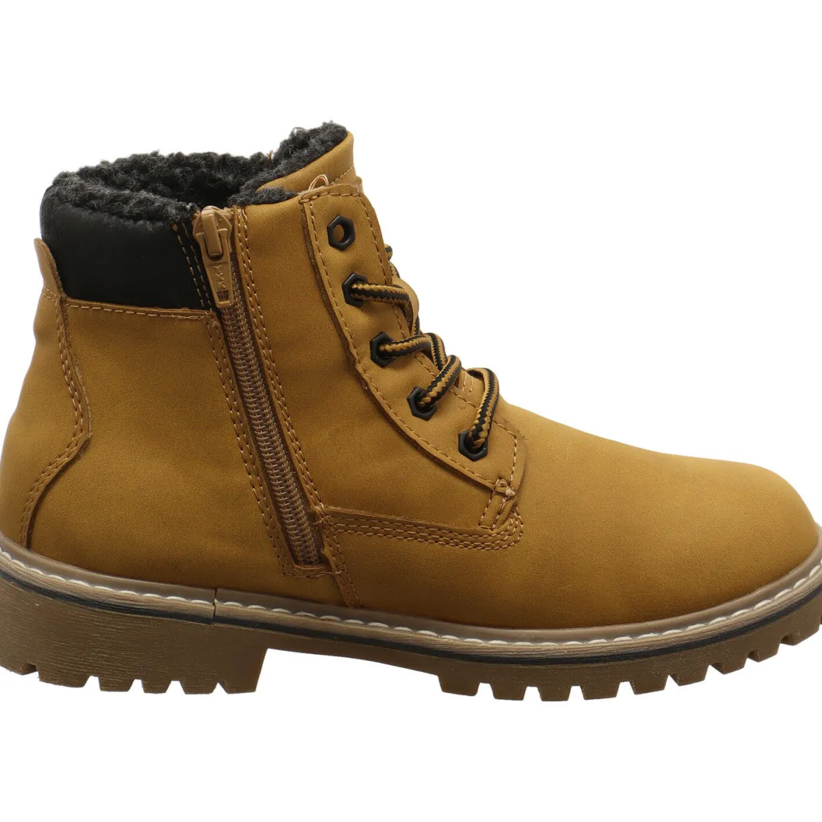 Durch den seitlichen Reißverschluss kommt man ganz leicht in den Schuh und die Schnürung optimiert die Passform. Das Innenfutter ist angeraut und durch die Tex Ausstattung ist er wasserabweisend. Kinder sind so optimal, vor Kälte und Nässe geschützt. Achte dabei bitte auf die richtige Auswahl der Socken und imprägniere den Schuh zusätzlich. Die Laufsohle hat einen leichten Grip.