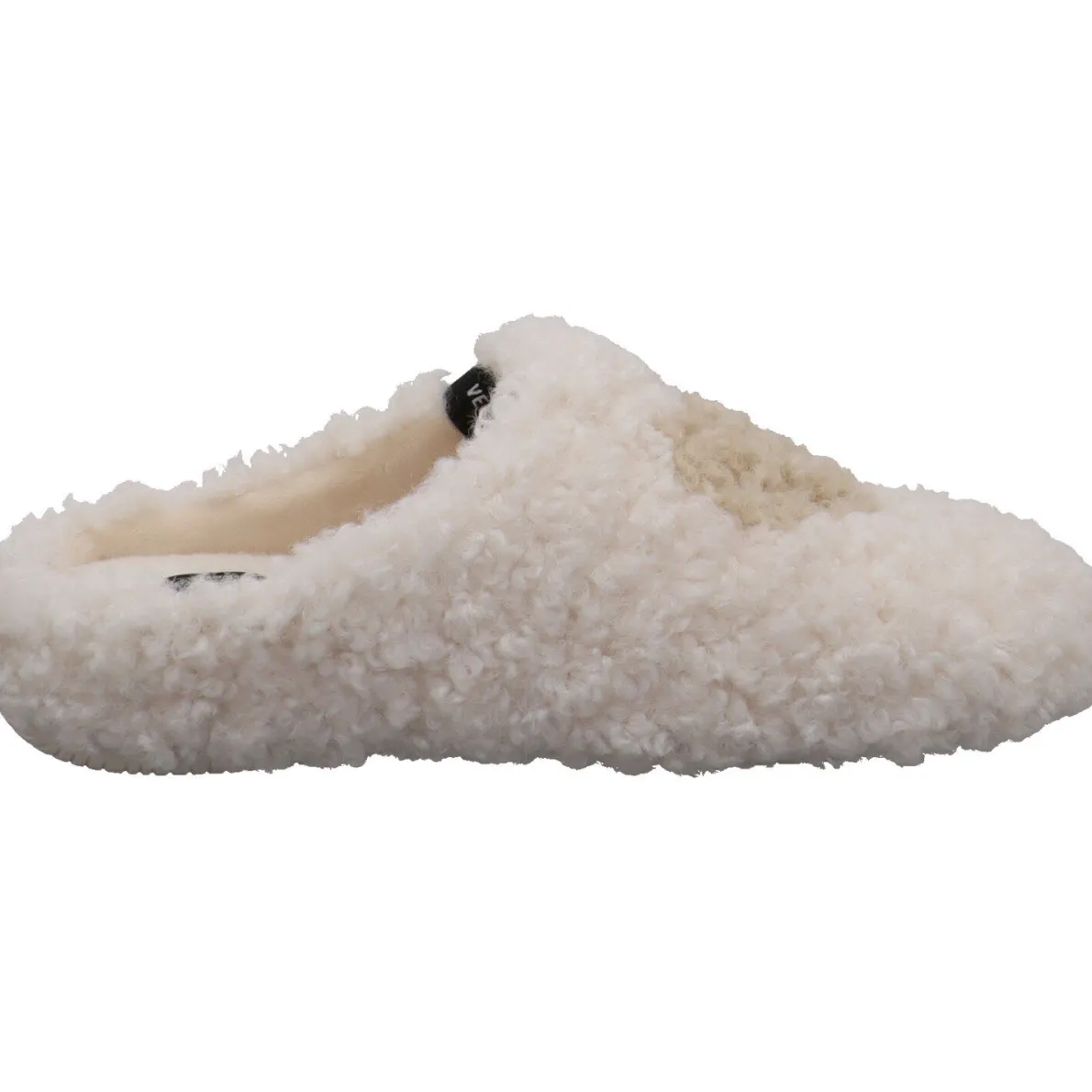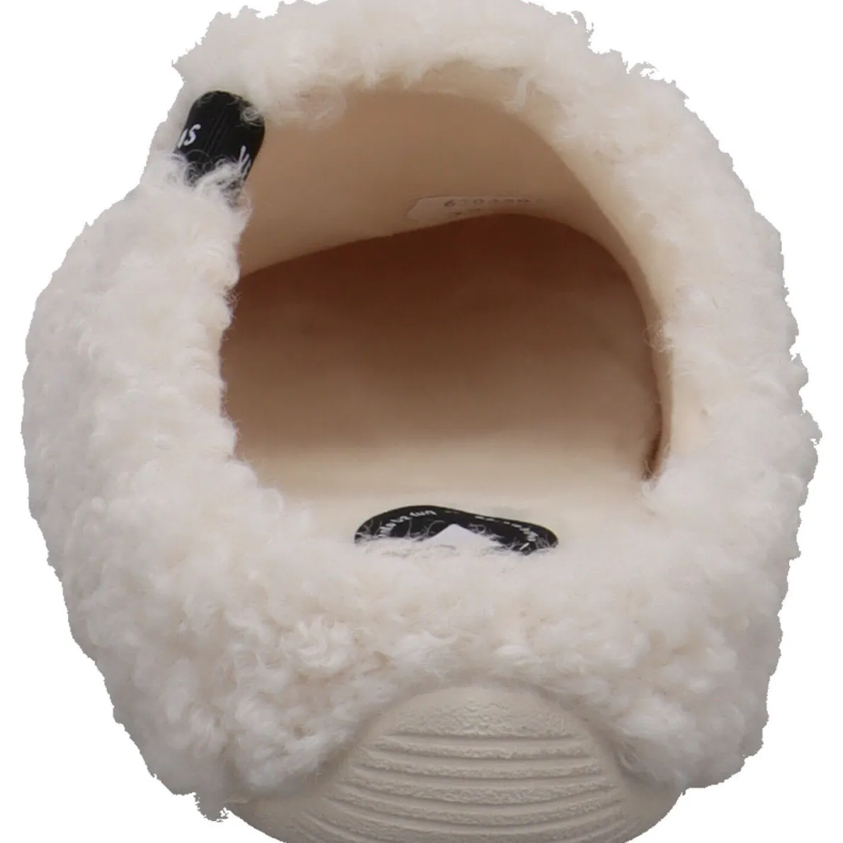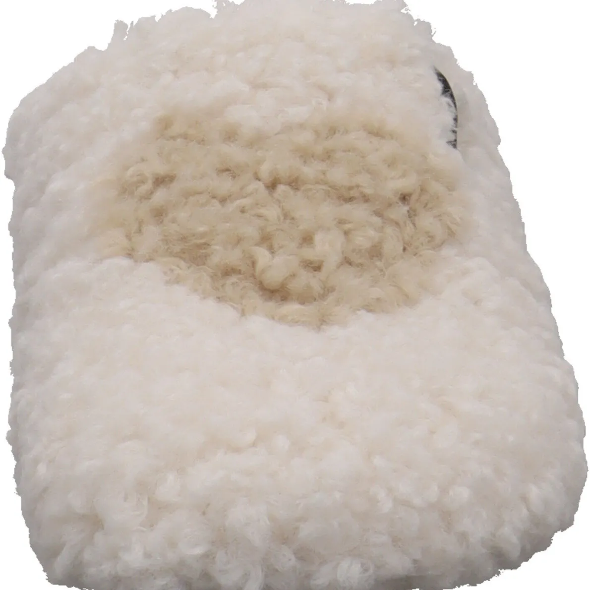Das Obermaterial aus besonders flauschigem, fast lockigem Textil in Creme Beige ist mit einem Herz in Braun auf dem Blatt verziert. Die Innensohle ist angenehm weich gepolstert und auch die Innenausstattung ist flauschig und angenehm zu tragen. Die Gummisohle gibt guten Halt. Der perfekte Schuhe, für gemütliche Stunden in deinem Zuhause.