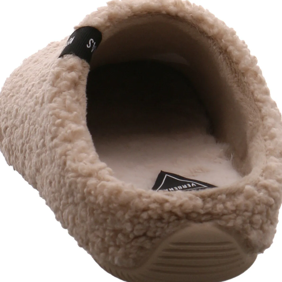Das kuschelig weiche Textil Obermaterial in Beige hält die Füße auch im Winter garantiert warm und die Gummisohle bietet gleichzeitig einen sicheren Halt. Die flauschig weiche Innensohle sorgt für besonderen Tragekomfort.