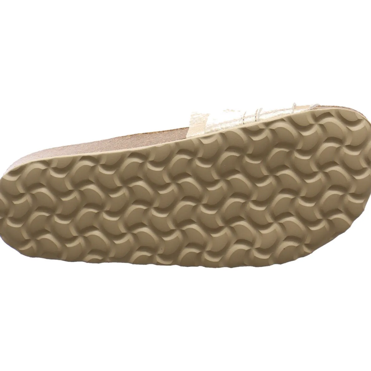 Gefertigt aus hochwertigem, grob genarbtem Echtleder in Gold mit Metallic Schimmer, macht der Schuh jeden Einsatz zuverlässig mit. Die tolle Faltenlegung des Riemen, fällt dabei sofort ins Auge. Für Komfort sorgt das anatomisch geformte Weichfußbett aus Echtleder mit Schaumeinlage.