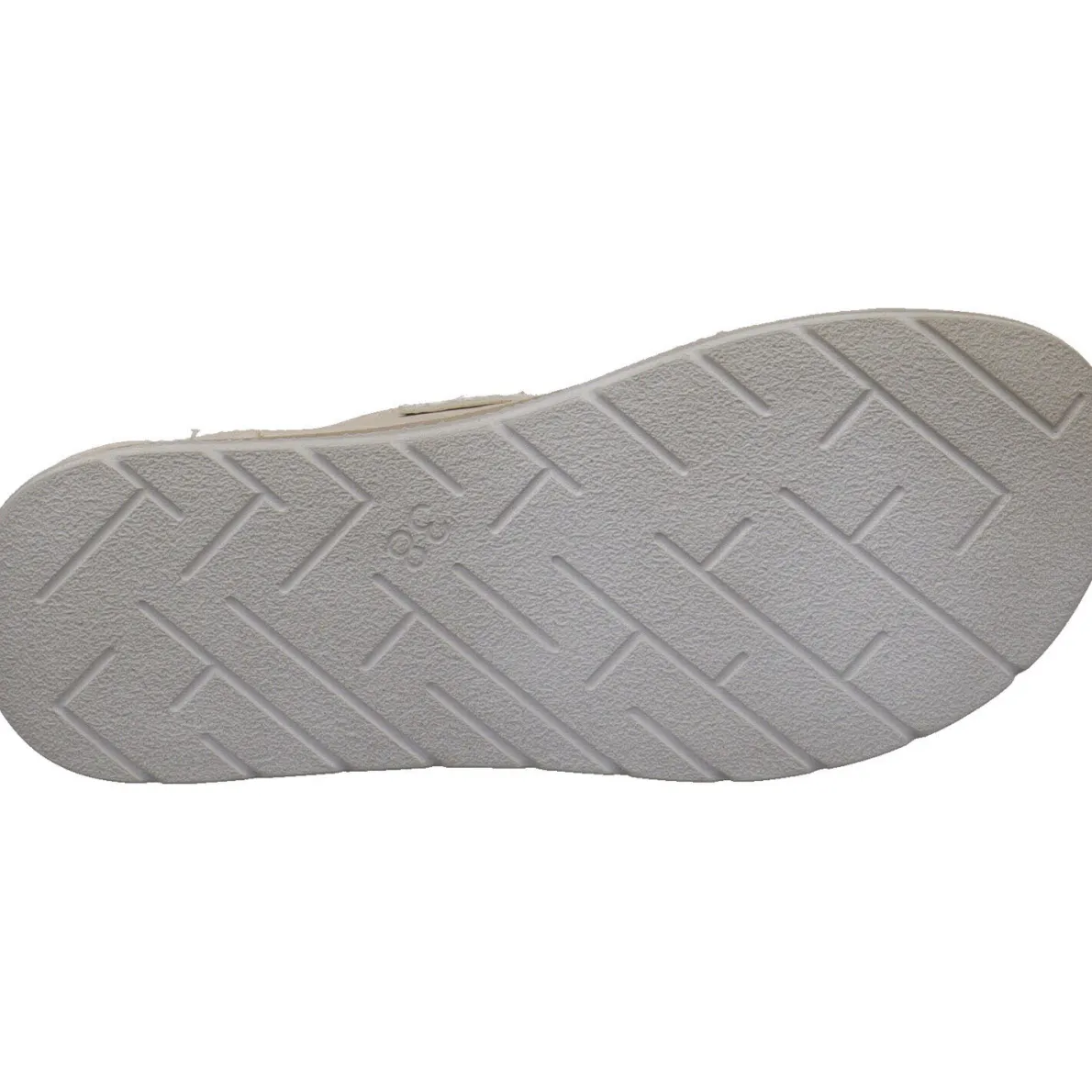 Sie wurde aus pflegeleichten Kunstleder in Beige gerfertig und ist mit einem verstellbaren Riemen über dem Rist gearbeitet. Mit diesem kannst du sie individuell auf deine Bedürfnisse einstellen. Der Riemen ist mit einem farbigen Print verziert und fällt sofort ins Auge.
