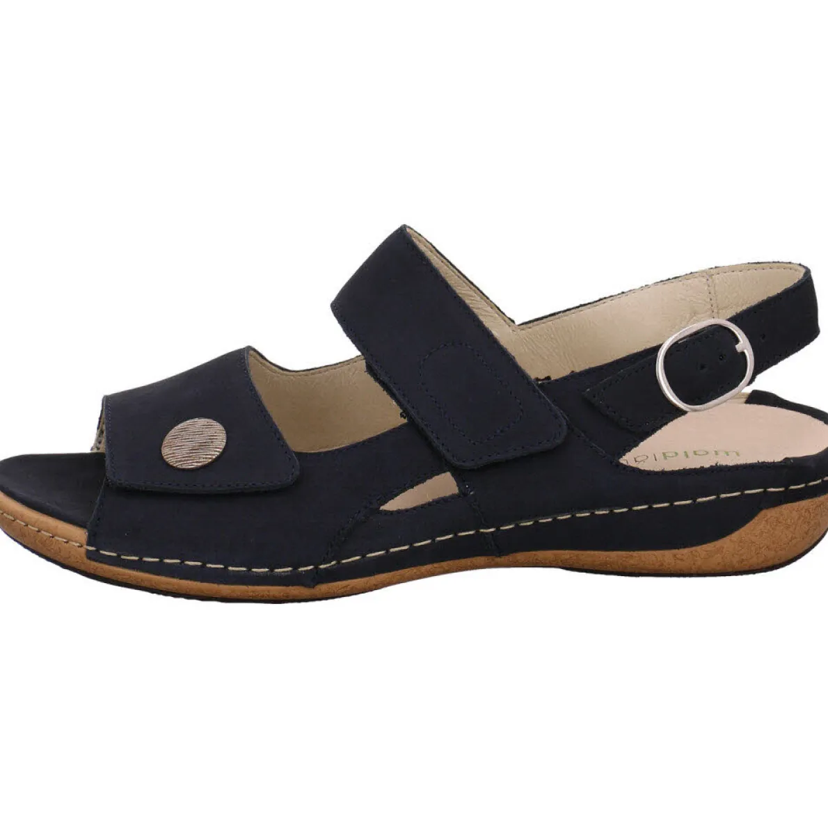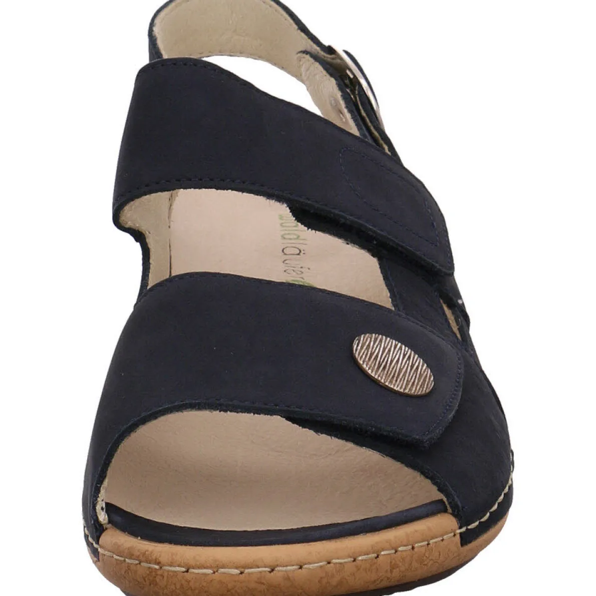 Die Heliett von Waldläufer ist eine besonders komfortable Damen Sandale aus hochwertigem Nubukleder in Marine Blau.