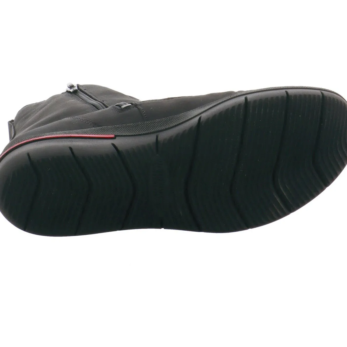 Der aus weichem und hochwertigem Nubukleder gefertigte Schuh bietet absoluten Komfort beim Gehen durch das gepolsterte Wechselfußbett und die Schuhweite H. Die leicht profilierte Laufsohle sorgt für guten Grip und die Schnürung in Komination mit dem seitlichen Reißverschluss garantieren einen leichten Einstieg. Der seitliche Zierreißverschluss und das Detail an der Ferse in Rot, runden das sonst schlichte Design gekonnt ab. Die integrierte Waldläufer Tex Membran macht den Schuh ausgesprochen wasserabweisend und atmungsaktiv.