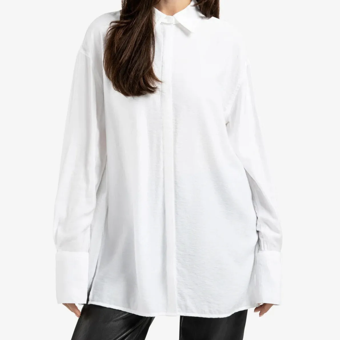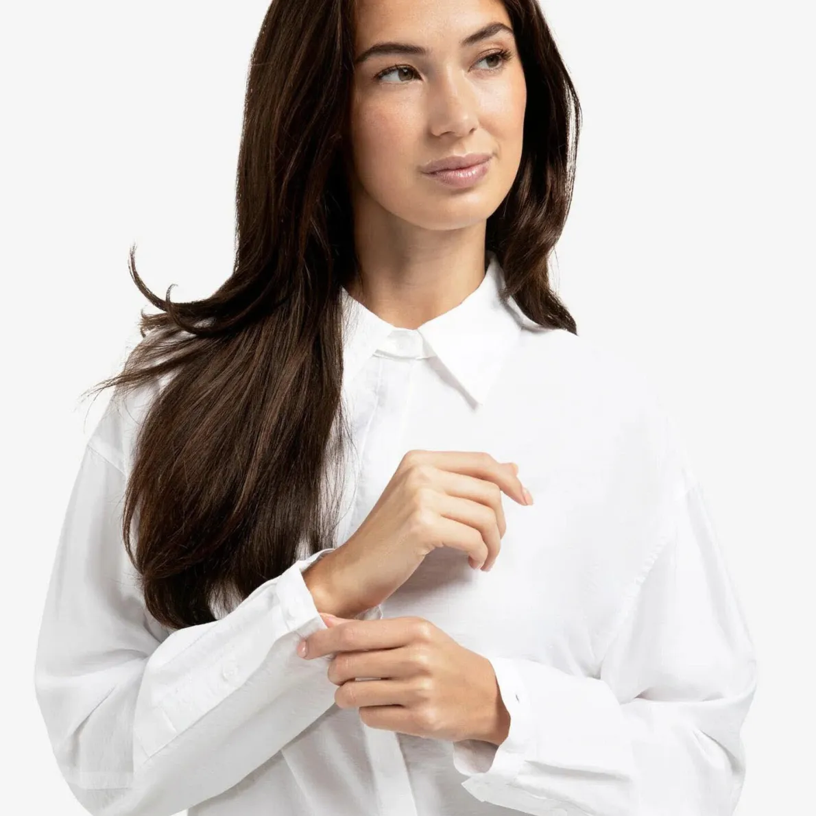 Als besondere Funktion kannst du bei dieser Longbluse, den klassischen Kragen und die Manschetten der langen Ärmel einfach entfernen. So erhälst du auf Wunsch eine komplett andere Optik und kannst es entsprechend dem Anlass anpassen.