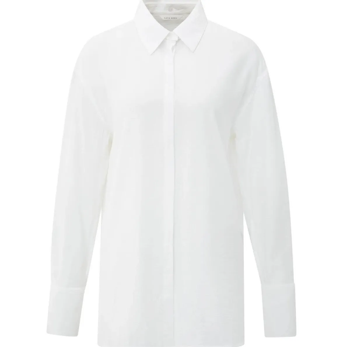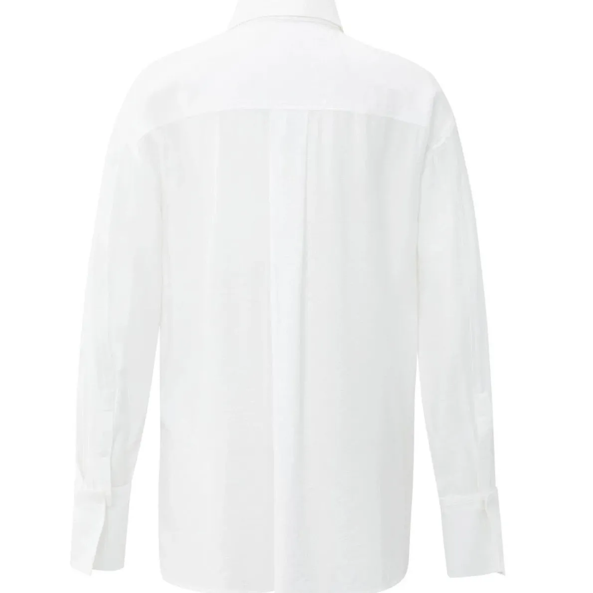 Der weiche Stoff in Weiß kommt durch die lockere Passform und die Plisseefalte am Rücken besonders gut zur Geltung und lässt sich angenehm tragen.