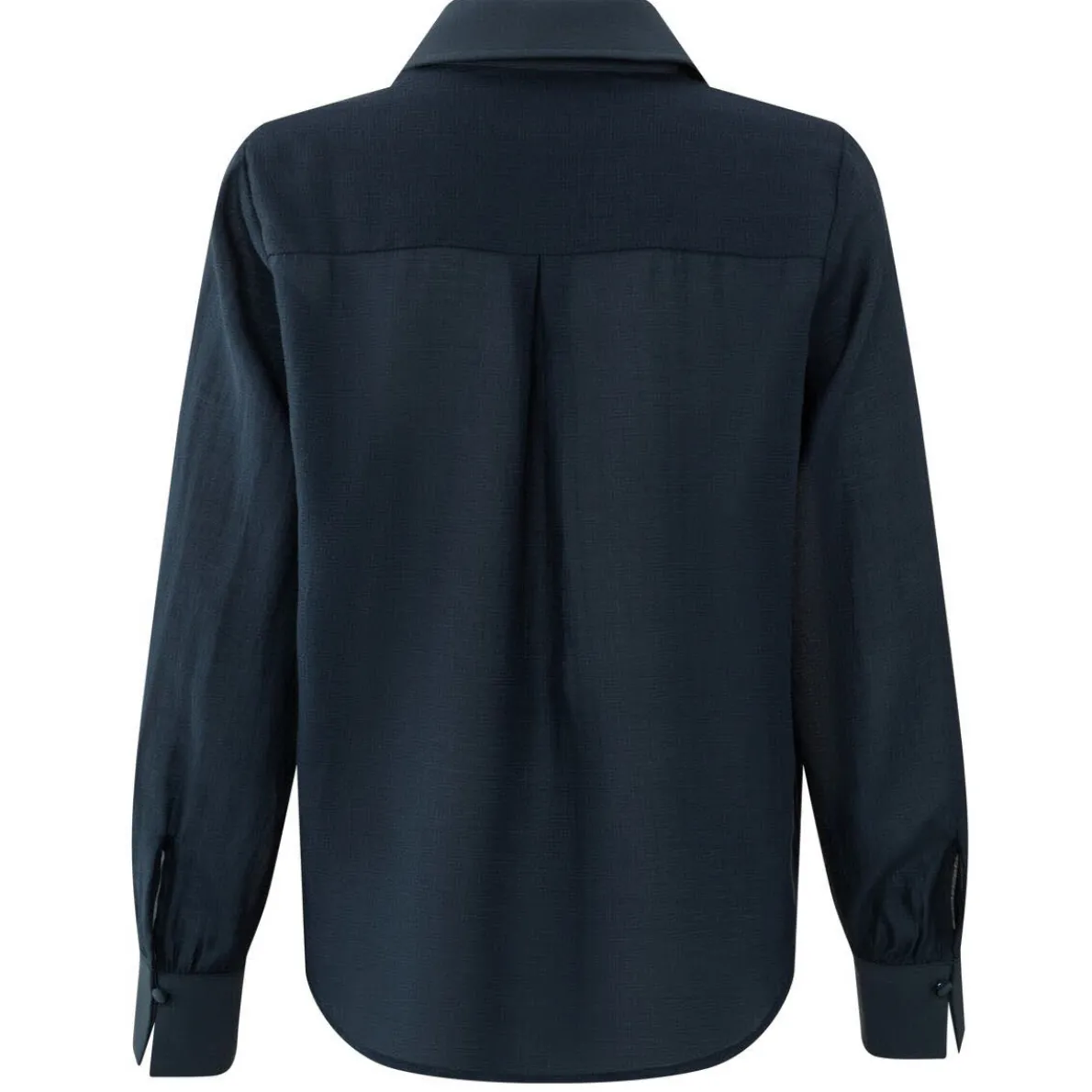 Der feine Stoff in Blau ist leicht transparent und sorgt für ein besonderen Look. Die Bluse hat einen leichten V-Ausschnitt einen klassischen Krage und lange Ärmel, mit Manschette. Die Knopfleiste ist mit farblich abgestimmten Knöpfen versehen. Ob für das Büro oder Casual kombiniert, ein toller Allrounder für jedes Outfit.