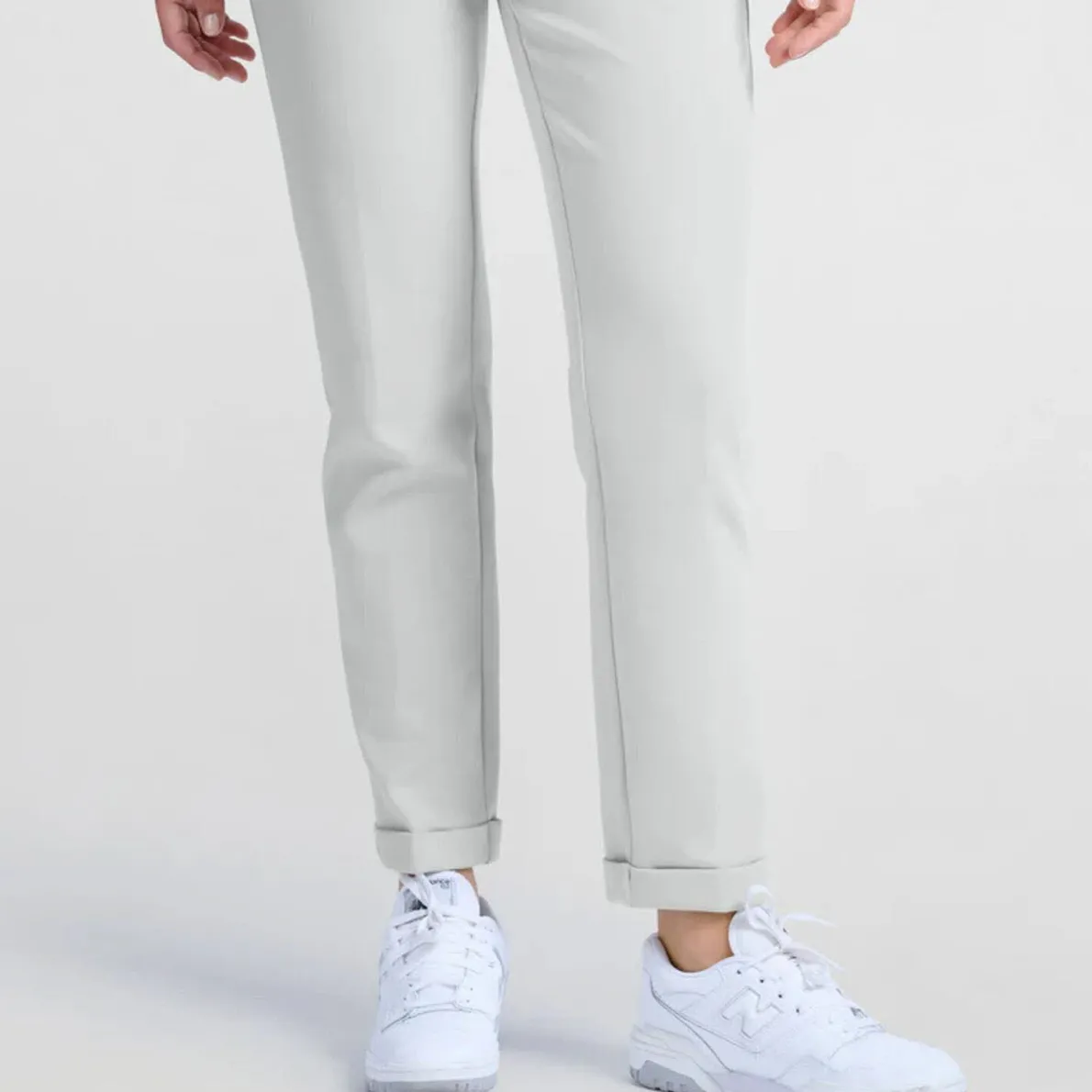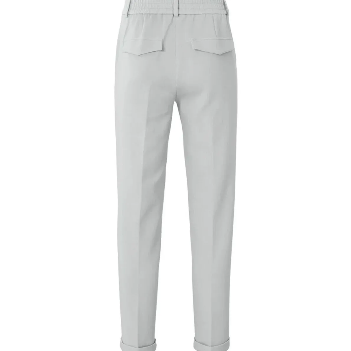 Die Hose hat ein gerades Bein mit Umschlag und einen Gummibund an der Rückseite, wodurch eine tolle Passform gewährleistet ist. Sie hat seitliche Taschen, Gürtelschlaufen und auf dem Gesäß Paspeltaschen.