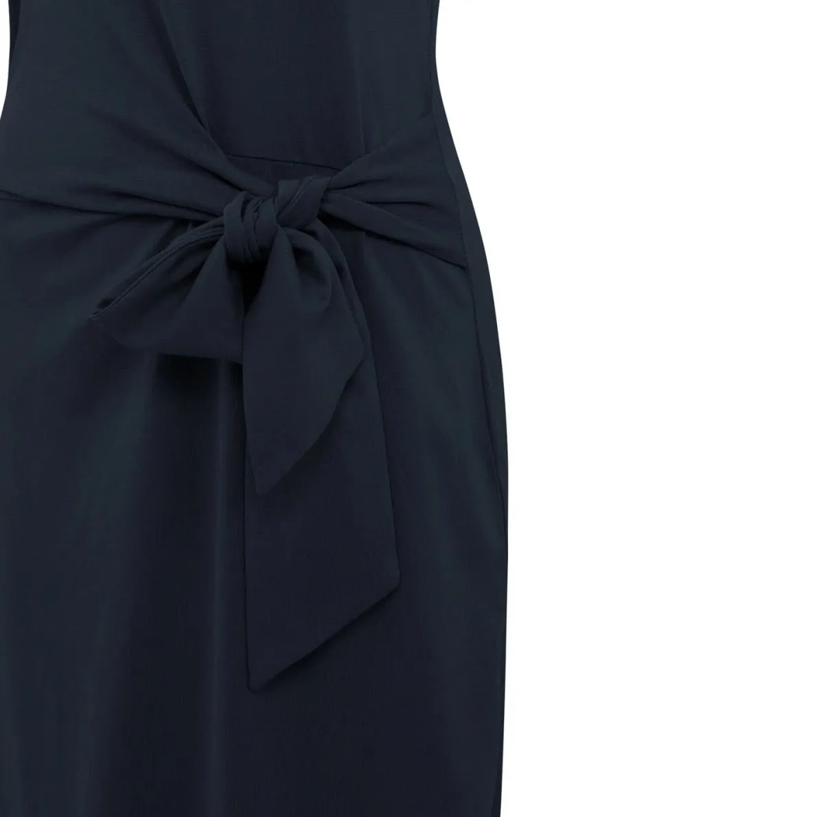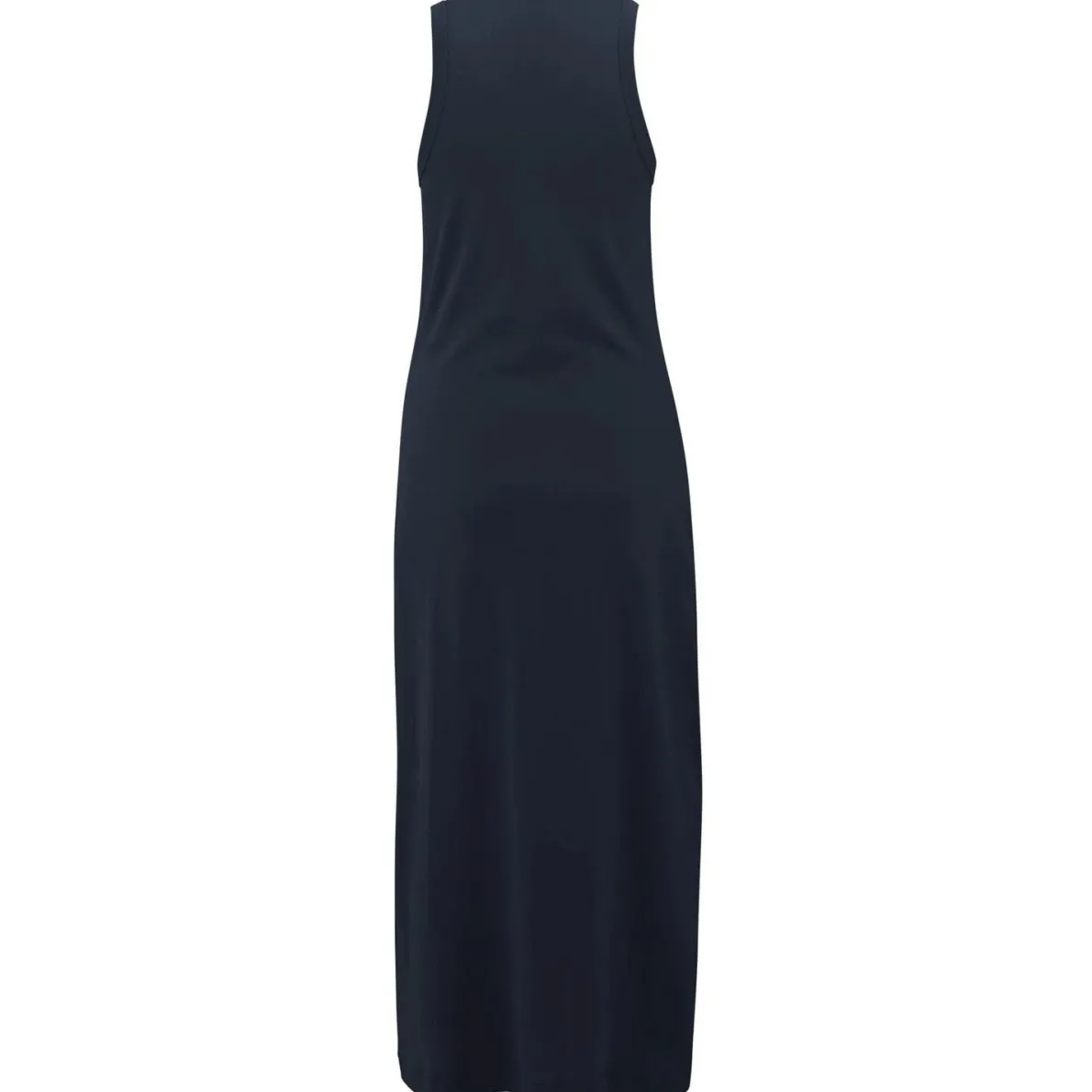 Es wurde aus reiner Baumwolle in Blau gefertigt. Es hat einen Rundhalsausschnitt und eine enge Passform. Auch hier findest du ein Knotendetail an der Taille. Es ist Ärmellos und hat die angesagte Midi Länge.
