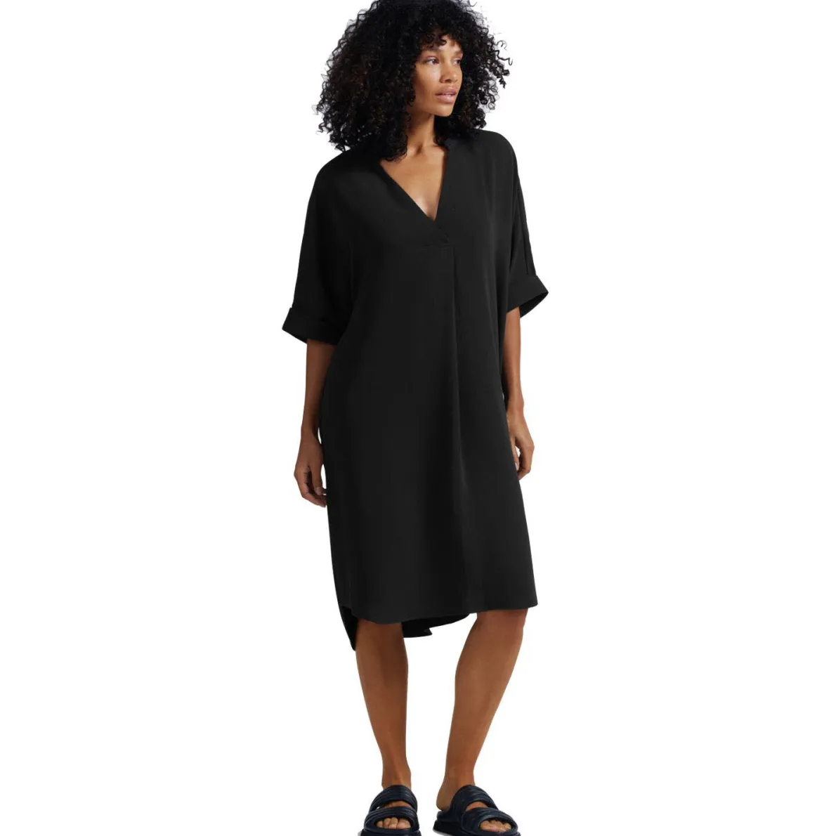 Es hat eine lockere Passform und einen weichen, fließenden Stoff on Schwarz. So ist es auch an warmen Sommertagen besonders angenehm zu tragen.