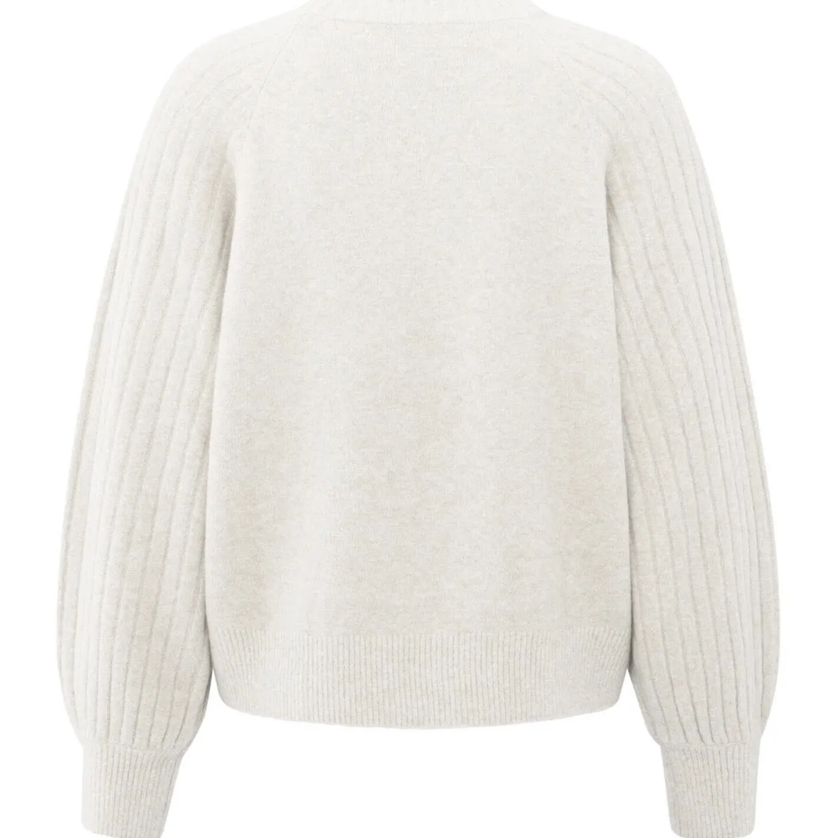 Das weiche Strickgewebe in Weiß ist mit einem Rundhalsausschnitt und einer lockeren Passform gearbeitet. Die langen Ärmel sind mit einem Rippstrickmuster versehen, diese verleihen ihm eine besondere Optik und passen perfekt zu den Bündchen.