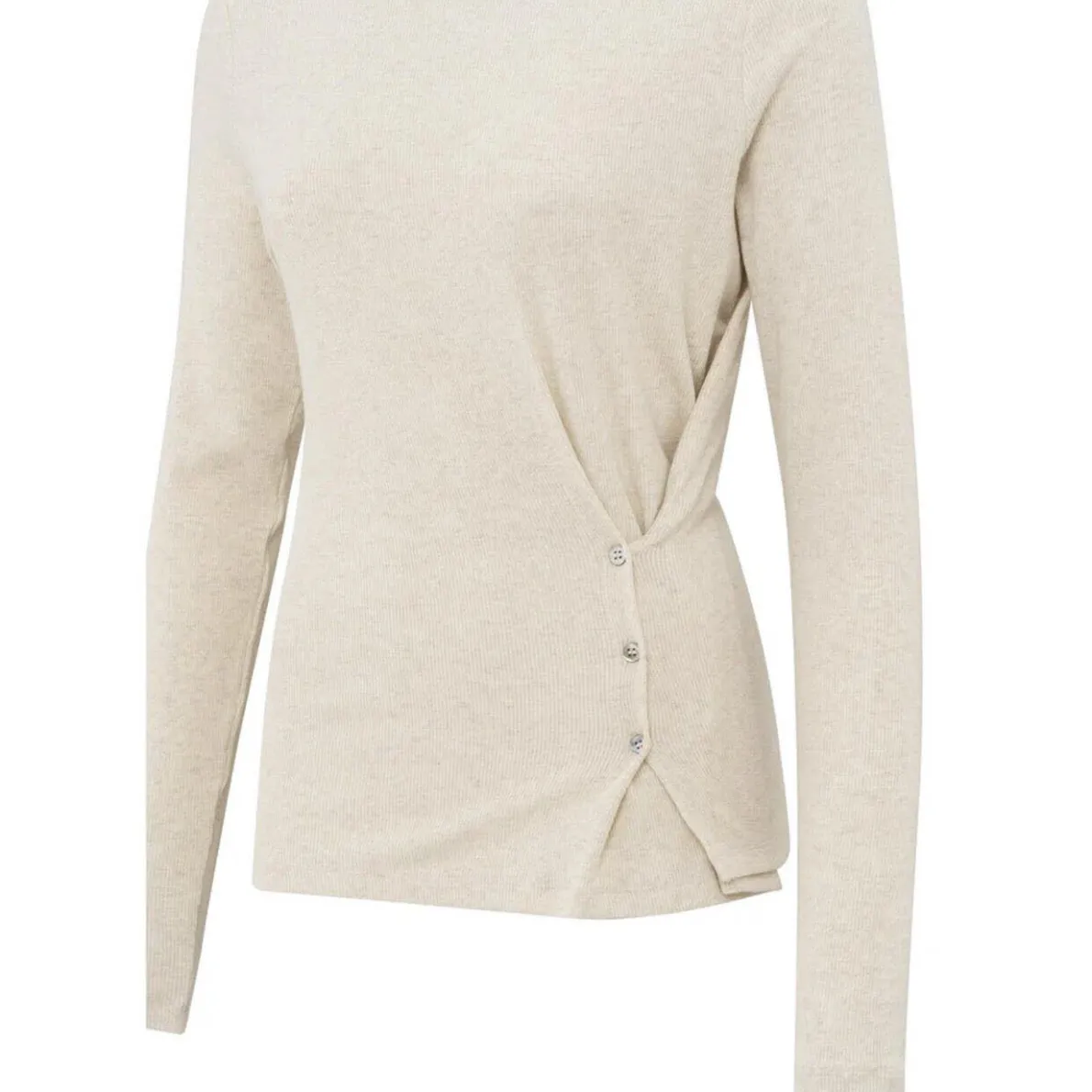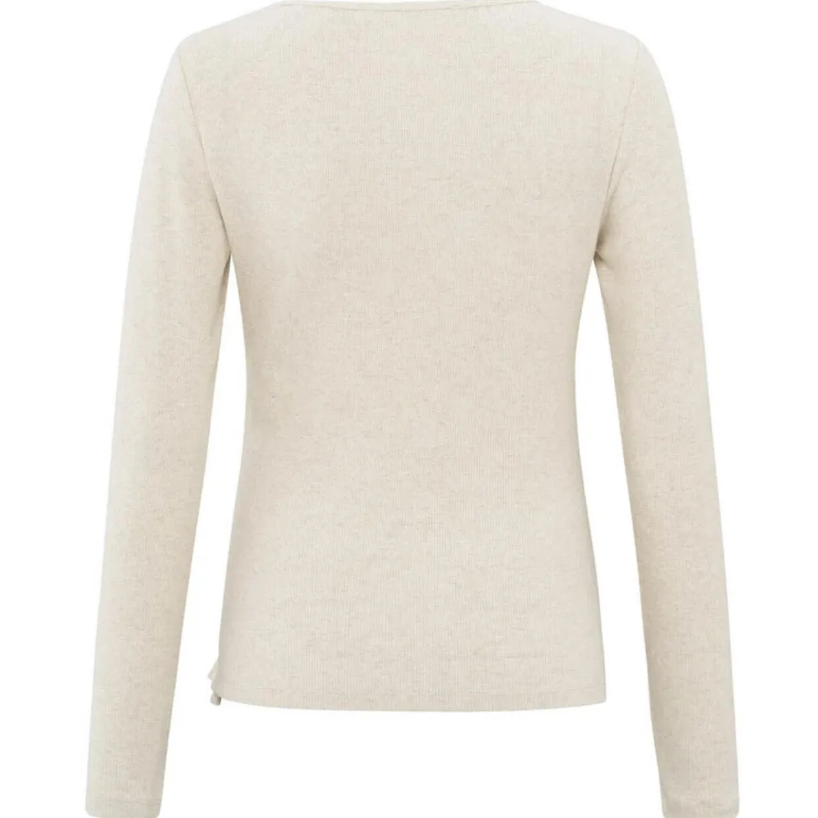 Der weiche Stoff in Beige, lässt sich super zu jedem Outfit kombinieren. Das Shirt hat lange Ärmel, einen Rundhalsausschnitt und eine schmale Passform.